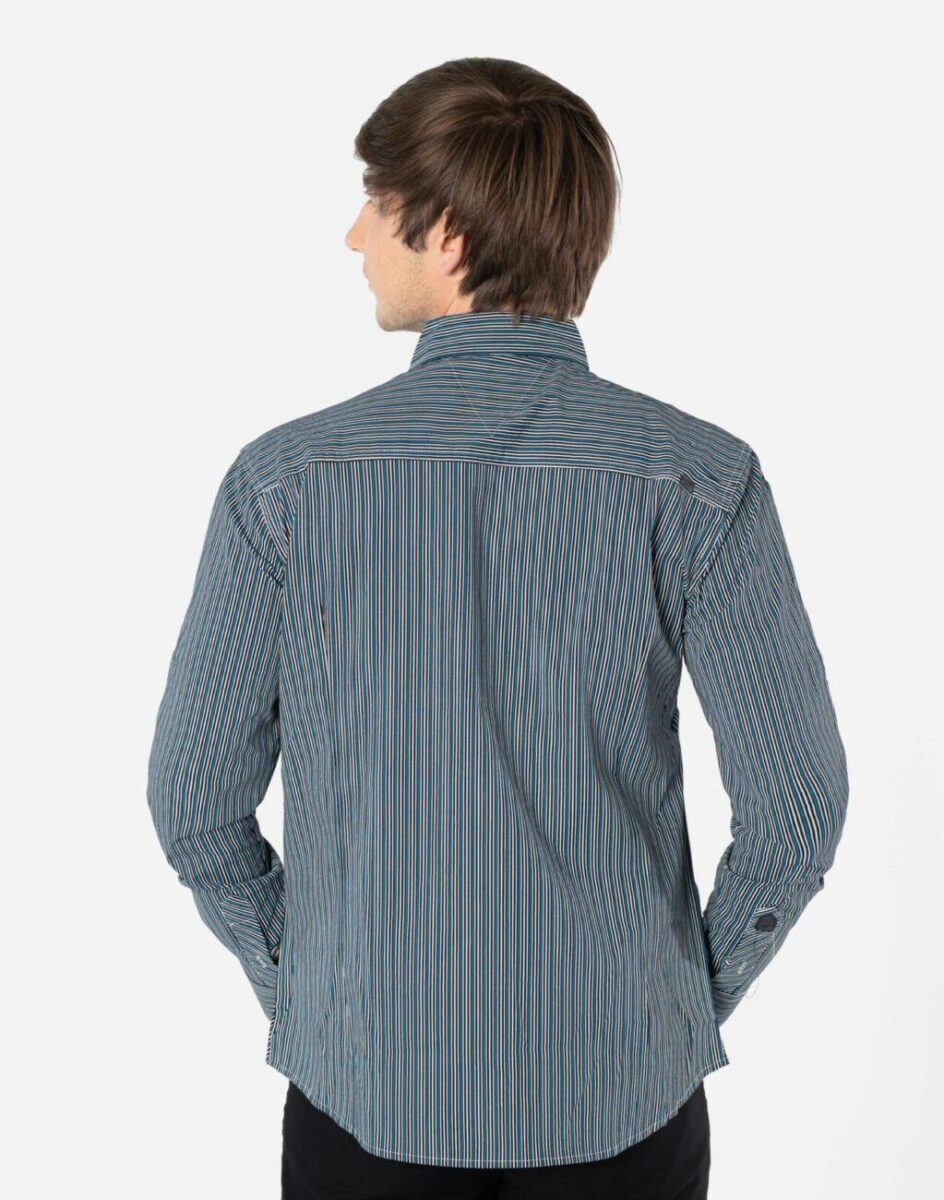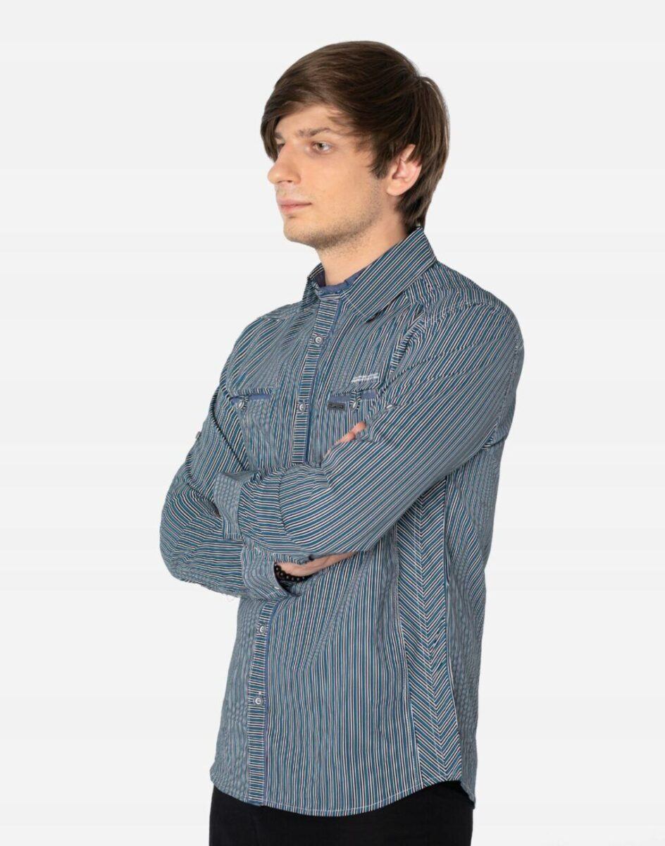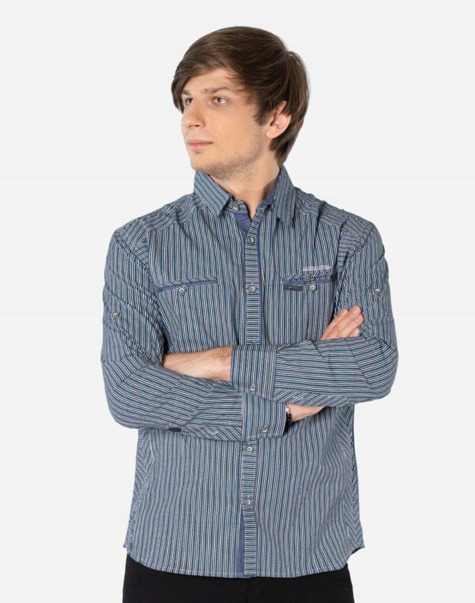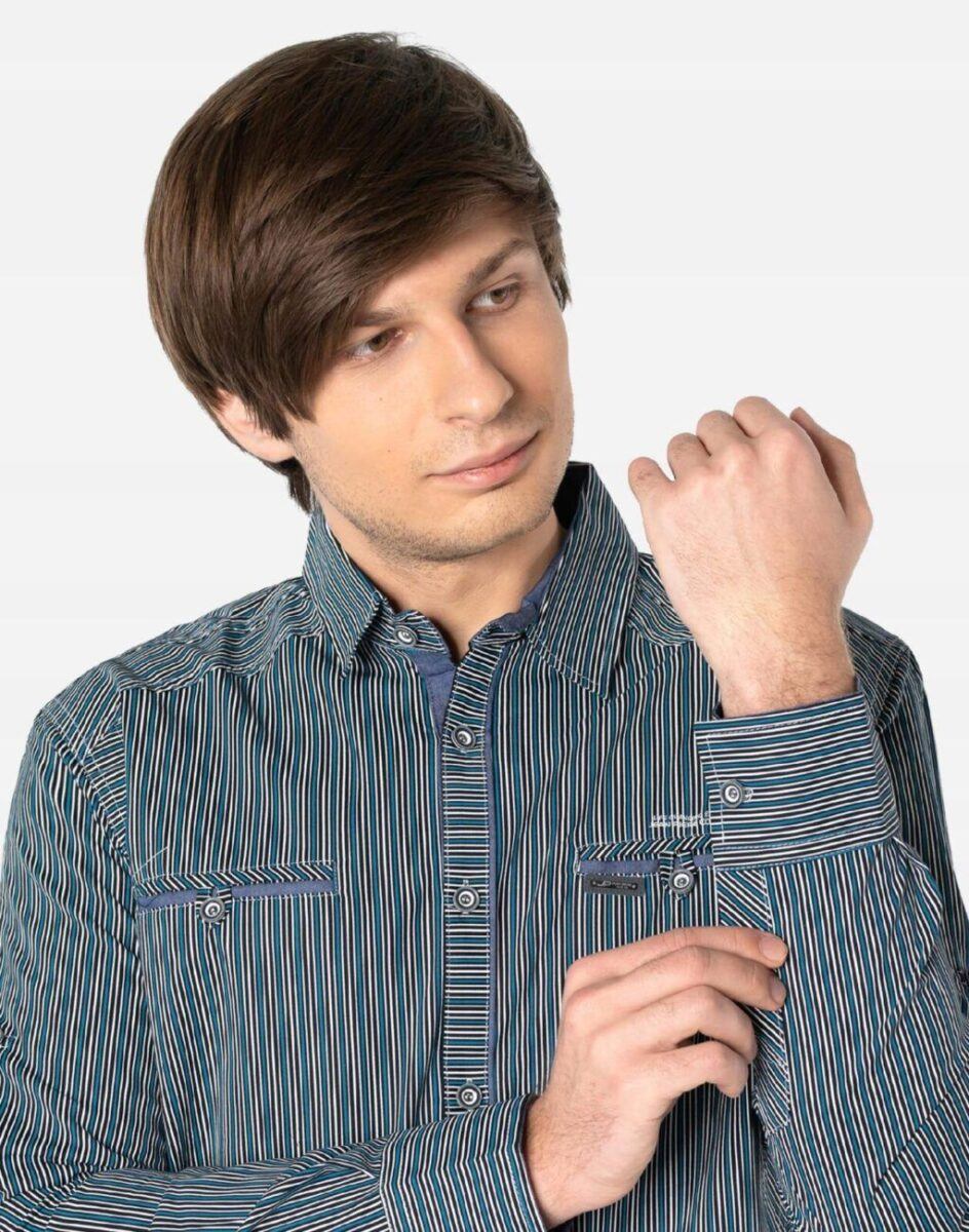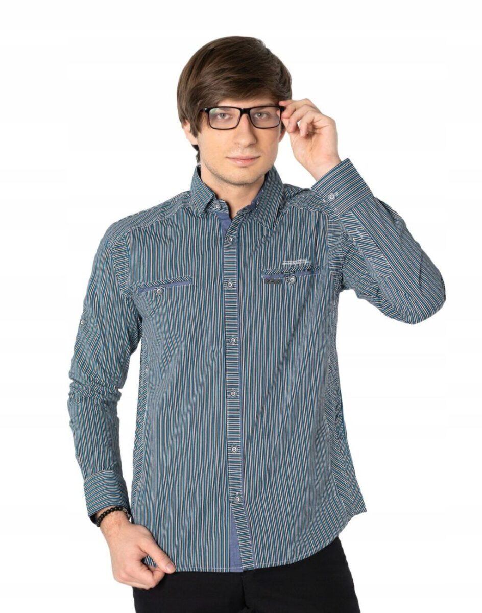 Koszula bawełniana w paski to jedno z najpopularniejszych okryć dobrze znanych każdemu mężczyźnie, a także świetna alternatywa dla zwykłych T-shirtów czy gładkich koszul. Idealnie komponuje się z klasycznymi dżinsami lub spodniami o wąskich nogawkach, jak również świetnie prezentuje się w połączeniu z krótkimi szortami. Wykonana z wysokiej jakości cienkiej tkaniny koszulowej bawełnianej z niewielkim dodatkiem elastanu. Naturalna bawełna gwarantuje izolację cieplną, wchłanianie potu i oddychanie skóry, a dodatek elastanu to gwarancja pełnej swobody ruchów oraz stabilności rozmiarów i kolorów po wielokrotnym praniu Zapinana w całości na rząd guzików. Na piersiach dwie wpuszczane kieszonki zapinane na guziki. Rękawy zakończone mankietami można łatwo podwinąć i zapiąć na wszytą wewnątrz taśmę i guzik, co czyni ją bardziej uniwersalną i nadającą się do noszenia zarówno w ciepłe jak i chłodniejsze dni. Fason typu Regular Fit prosty, nie krępujący ruchów, odpowiednio wykrojony do noszenia na wierzchu. Koszula jest wygodna w użytkowaniu, a ciekawie zestawiona może stać się kluczem do stworzenia wyjątkowej stylizacji. Można ją nosić zarówno rozpiętą, z T-shirtem, jak i zapiętą, bo paski są dobre na wszystko. Klasyczny prosty krój fantastycznie pasować będzie do pracy, jak i na rodzinny obiad czy na wieczorne wyjście na piwo z kolegami. Wszystko za sprawą różnorodnych stylizacji, które można wyczarować łącząc bawełnianą koszulę w paski z innymi elementami stroju.