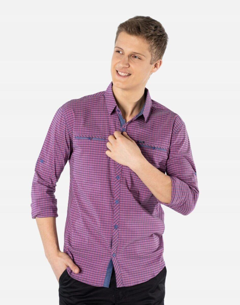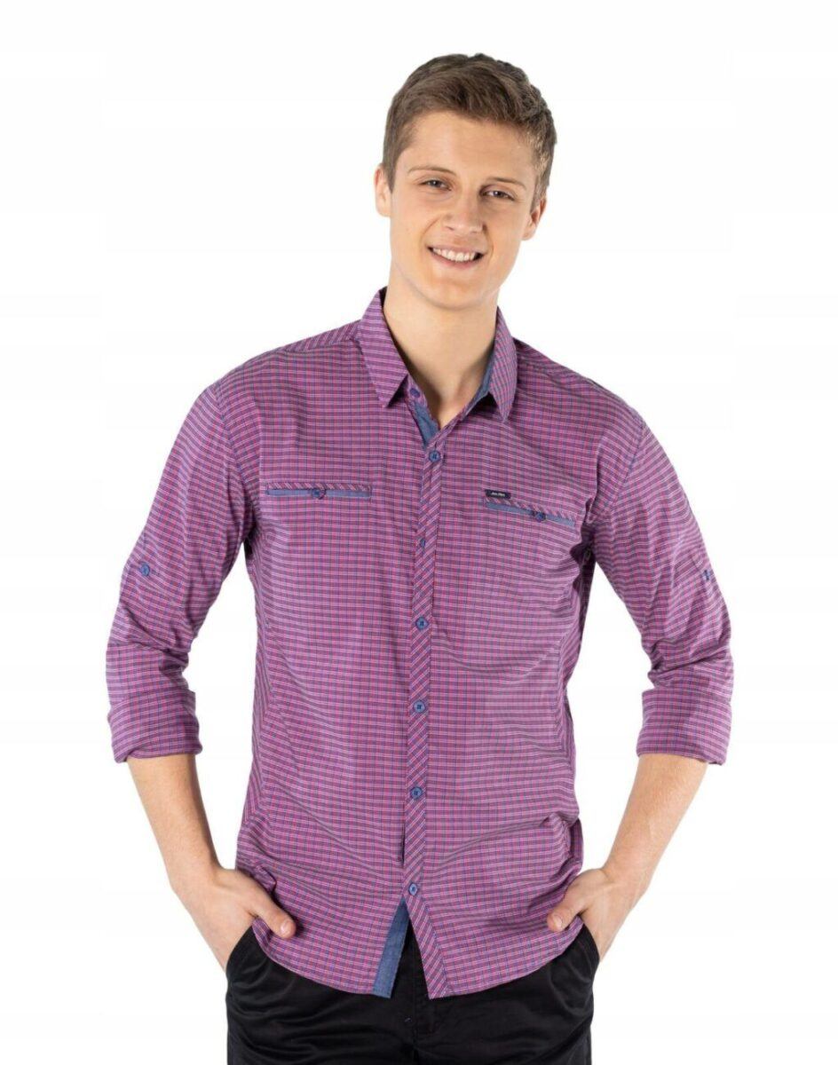 Koszula bawełniana w kratę to to jedno z najpopularniejszych okryć dobrze znanych każdemu mężczyźnie a także świetna alternatywa dla zwykłych T-shirtów czy gładkich koszul. Idealnie komponuje się z klasycznymi dżinsami lub spodniami o wąskich nogawkach, jak również świetnie prezentuje się w połączeniu z krótkimi szortami. Wykonana z wysokiej jakości cienkiej tkaniny koszulowej bawełnianej z niewielkim dodatkiem poliestru i elastanu. Naturalna bawełna gwarantuje izolację cieplną, wchłanianie potu i oddychanie skóry a dodatek poliestru i elastanu to gwarancja pełnej swobody ruchów oraz stabilności rozmiarów i kolorów po wielokrotnym praniu Zapinana w całości na rząd guzików. Na piersiach dwie wpuszczane kieszonki zapinane na guziki. Rękawy zakończone mankietami można łatwo podwinąć i zapiąć na wszytą wewnątrz taśmę i guzik, co czyni ją bardziej uniwersalną i nadającą się do noszenia zarówno w ciepłe jak i chłodniejsze dni. Fason typu Regular Fit prosty, nie krepujący ruchów, odpowiednio wykrojony do noszenia na wierzchu. Koszula jest wygodna w użytkowaniu, a ciekawie zestawiona może stać się kluczem do stworzenia wyjątkowej stylizacji. Można ją nosić zarówno rozpiętą, z T-shirtem, jak i zapiętą bo kratka jest dobra na wszystko. Klasyczny prosty krój fantastycznie pasować będzie do pracy, jak i rodzinny obiad czy na wieczorne wyjście na piwo z kolegami. Wszystko za sprawą różnorodnych stylizacji, które można wyczarować łącząc bawełnianą koszulę w kratę z innymi elementami stroju.
