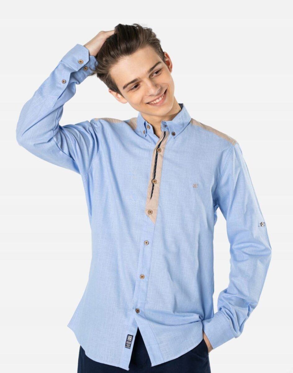 - Kształt kołnierza: Kent, klasyczny, wykładany zapinany na guziki