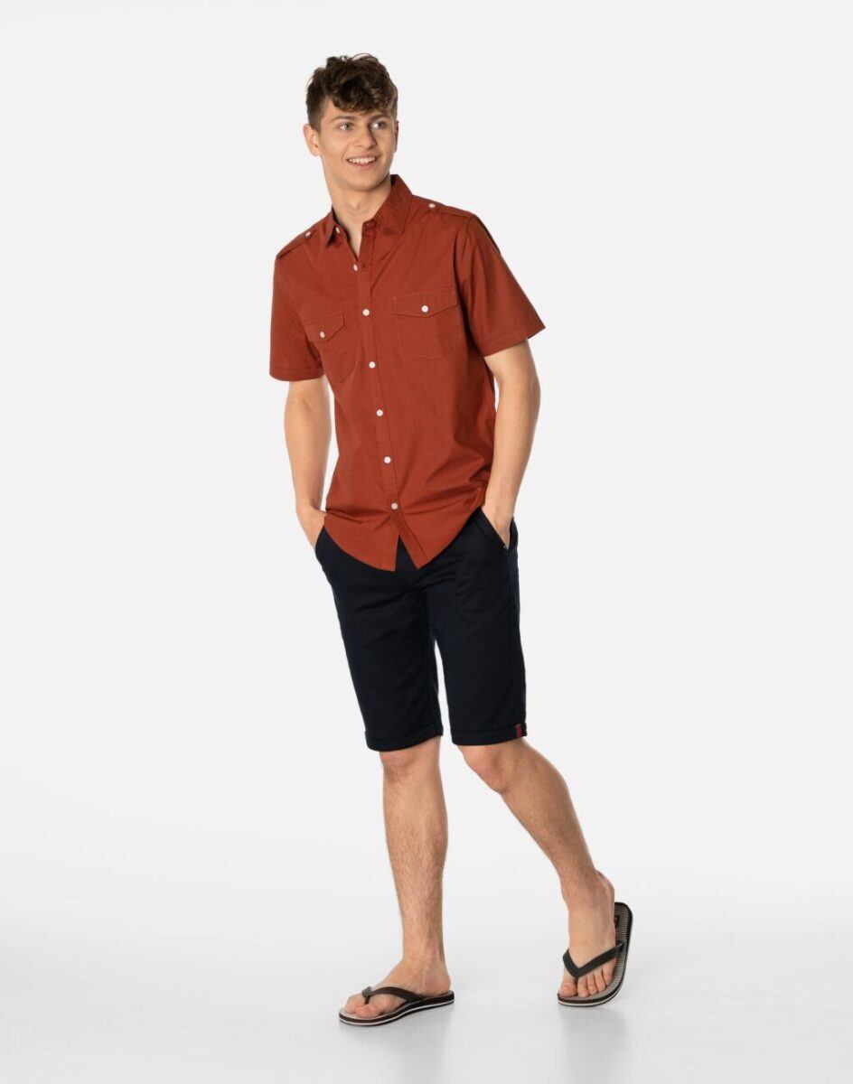 Cienka koszula bawełniana to świetna alternatywa dla zwykłych T-shirtów czy koszulek typu Polo. Nie ma lepszej propozycji na gorące lato niż koszula z cienkiej organicznej bawełny, bo gdy temperatury rosną koszule z lekkich, przewiewnych tkanin zapewniają komfort termiczny i dobrze odprowadzają wilgoć. Wykonana z cienkiej tkaniny koszulowej 100% bawełnianej i zapinana w całości na rząd guzików. Naturalna bawełna gwarantuje transport wilgoci na zewnątrz z jednoczesną wentylacją i oddychanie skóry. Na piersiach dwie kieszonki naszywane kryte patkami zapinanymi na guziki. Fason typu Regular Fit prosty, nie krepujący ruchów, odpowiednio wykrojony do noszenia na wierzchu. Uwielbiany przez wszystkich mężczyzn wygodny krój z zaokrąglanym dołem koszuli świetnie dopasowuje się do sylwetki. Można ją nosić zarówno rozpiętą z T-shirtem, jak i zapiętą a ciekawie zestawiona może stać się kluczem do stworzenia wyjątkowej stylizacji. Idealnie komponuje się z klasycznymi dżinsami lub spodniami o wąskich nogawkach, jak również świetnie prezentuje się w połączeniu z krótkimi spodenkami i doskonale uzupełni niejedną letnią stylizację.