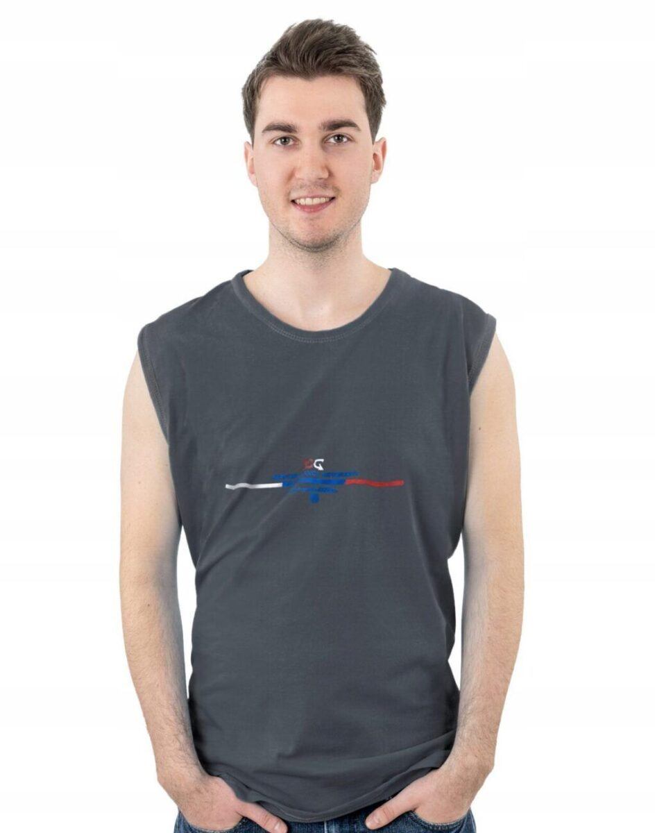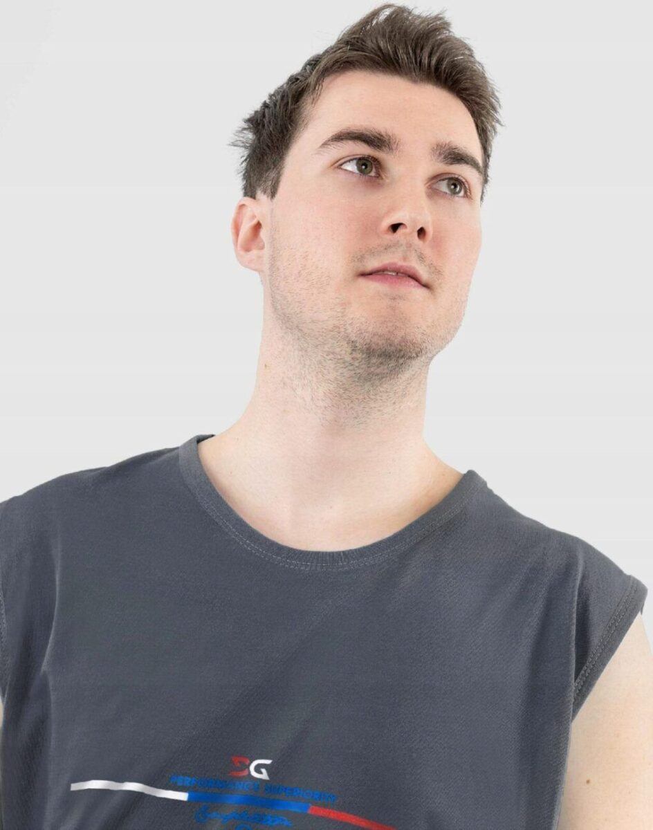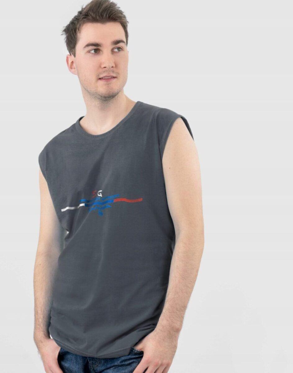 Sportowa koszulka męska bez rękawów Tank Top nie krępuje ruchów, jest wygodna a co najważniejsze cienka i przewiewna dzięki czemu jest sprawdzonym wyborem podczas aktywnego spędzania czasu. Odpowiedni krój koszulki nie ogranicza swobody ruchów a niewielka gramatura wpływa na komfort użytkowania czyniąc ją idealnie dostosowaną do wysokich temperatur. Na siłownię, trening, grę w piłkę, jogging, wypad za miasto i na co dzień. Pozbawiona rękawów jest bardzo lekka, przewiewna i niezawodna w czasie upałów. Bardzo prosta w swojej konstrukcji i w tym tkwi jej największa zaleta. Można ją założyć do krótkich spodenek lub połączyć ze sportową koszulą albo bluzą bo jest bardzo łatwa do łączenia z innymi ubraniami. Jeżeli lubisz czuć się wygodnie a komfort jest dla Ciebie tak samo ważny jak dobry wygląd to jest ona stworzona właśnie dla Ciebie.