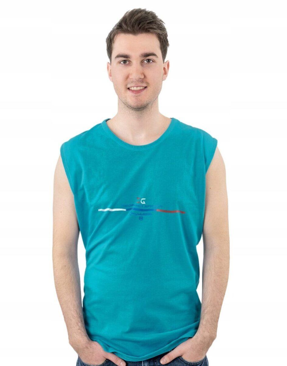 Sportowa koszulka męska bez rękawów Tank Top nie krępuje ruchów, jest wygodna a co najważniejsze cienka i przewiewna dzięki czemu jest sprawdzonym wyborem podczas aktywnego spędzania czasu. Odpowiedni krój koszulki nie ogranicza swobody ruchów a niewielka gramatura wpływa na komfort użytkowania czyniąc ją idealnie dostosowaną do wysokich temperatur. Na siłownię, trening, grę w piłkę, jogging, wypad za miasto i na co dzień. Pozbawiona rękawów jest bardzo lekka, przewiewna i niezawodna w czasie upałów. Bardzo prosta w swojej konstrukcji i w tym tkwi jej największa zaleta. Można ją założyć do krótkich spodenek lub połączyć ze sportową koszulą albo bluzą bo jest bardzo łatwa do łączenia z innymi ubraniami. Jeżeli lubisz czuć się wygodnie a komfort jest dla Ciebie tak samo ważny jak dobry wygląd to jest ona stworzona właśnie dla Ciebie.