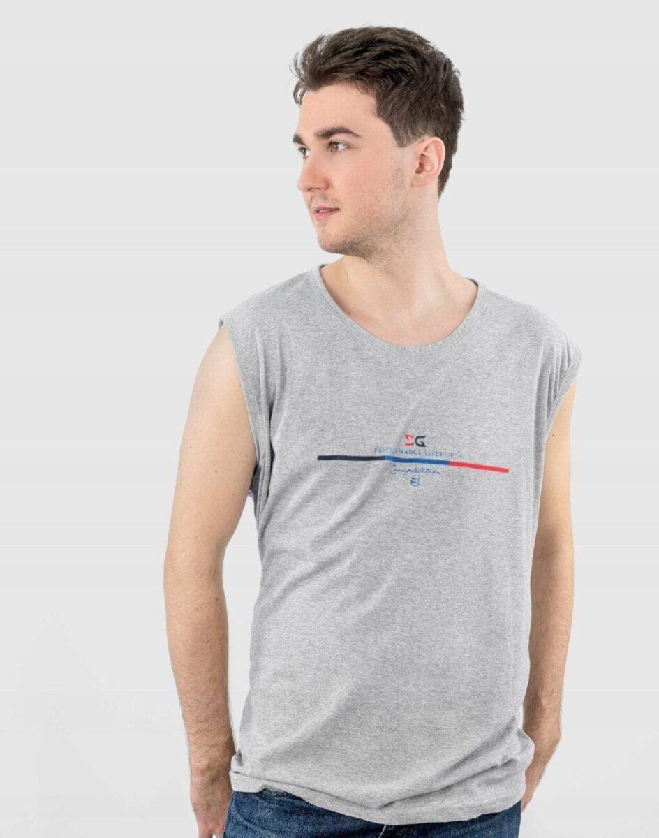 Sportowa koszulka męska bez rękawów Tank Top nie krępuje ruchów, jest wygodna a co najważniejsze cienka i przewiewna dzięki czemu jest sprawdzonym wyborem podczas aktywnego spędzania czasu. Odpowiedni krój koszulki nie ogranicza swobody ruchów a niewielka gramatura wpływa na komfort użytkowania czyniąc ją idealnie dostosowaną do wysokich temperatur. Na siłownię, trening, grę w piłkę, jogging, wypad za miasto i na co dzień. Pozbawiona rękawów jest bardzo lekka, przewiewna i niezawodna w czasie upałów. Bardzo prosta w swojej konstrukcji i w tym tkwi jej największa zaleta. Można ją założyć do krótkich spodenek lub połączyć ze sportową koszulą albo bluzą bo jest bardzo łatwa do łączenia z innymi ubraniami. Jeżeli lubisz czuć się wygodnie a komfort jest dla Ciebie tak samo ważny jak dobry wygląd to jest ona stworzona właśnie dla Ciebie.