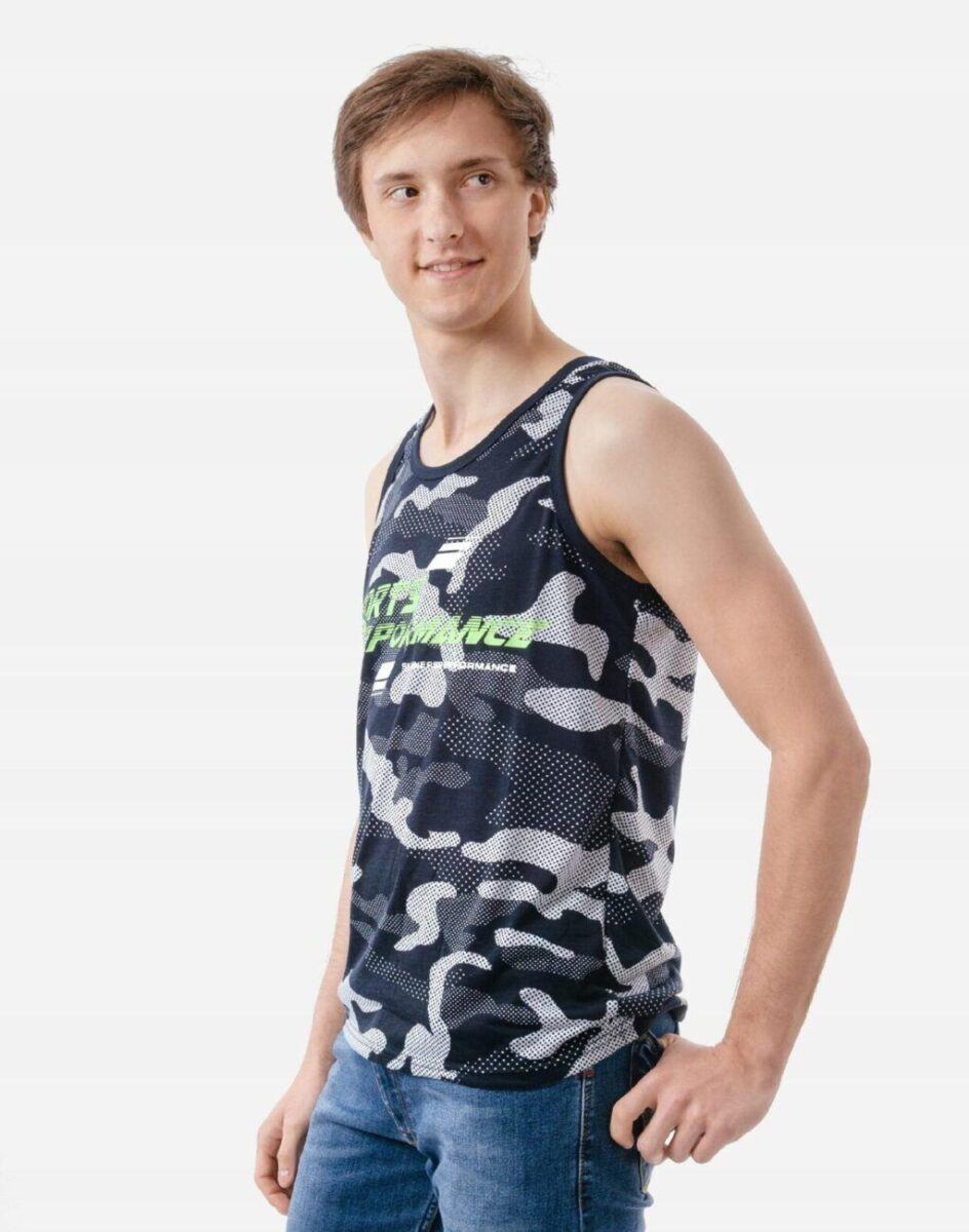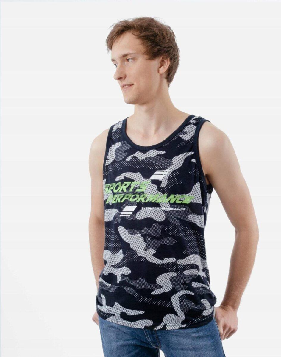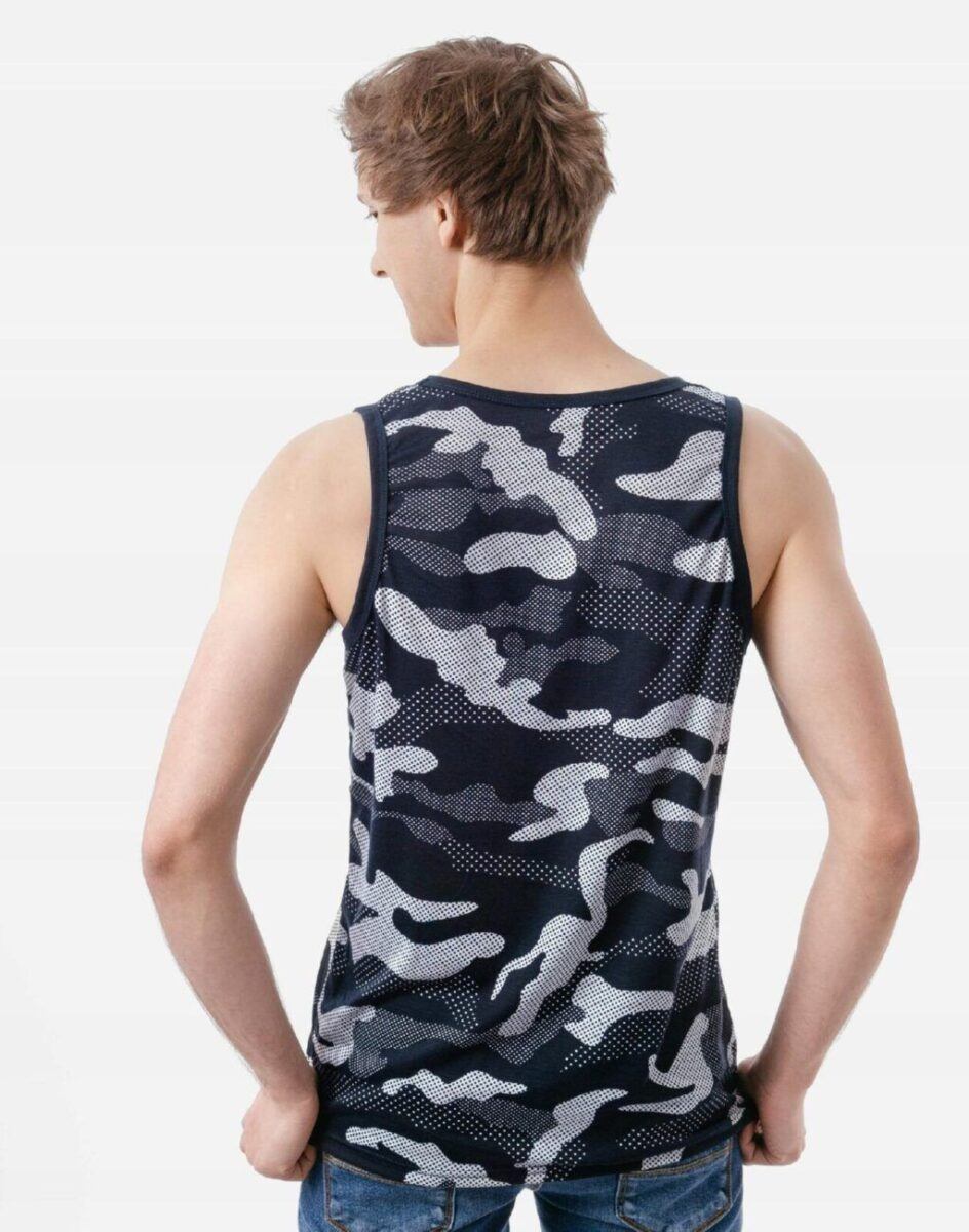 Sportowa koszulka męska moro bez rękawów Tank Top nie krępuje ruchów, jest wygodna a co najważniejsze cienka i przewiewna dzięki czemu jest sprawdzonym wyborem podczas aktywnego spędzania czasu. Odpowiedni krój koszulki nie ogranicza swobody ruchów a niewielka gramatura pozytywnie wpływa na komfort użytkowania czyniąc ją idealnie dostosowaną do wysokich temperatur. Na siłownię, trening, grę w piłkę, jogging, wypad za miasto i na co dzień. Pozbawiona rękawów jest bardzo lekka, przewiewna i niezawodna w czasie upałów. Bardzo prosta w swojej konstrukcji i w tym tkwi jej największa zaleta. Można ją założyć do krótkich spodenek lub połączyć ze sportową koszulą albo bluzą bo jest bardzo łatwa do łączenia z innymi ubraniami. Jeżeli lubisz czuć się wygodnie a komfort jest dla Ciebie tak samo ważny jak dobry wygląd to jest ona stworzona właśnie dla Ciebie.
