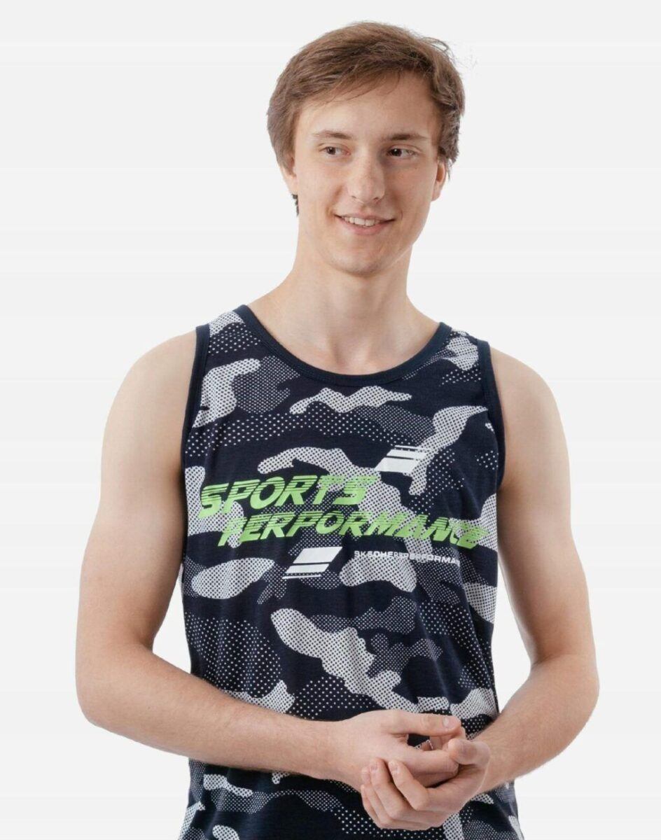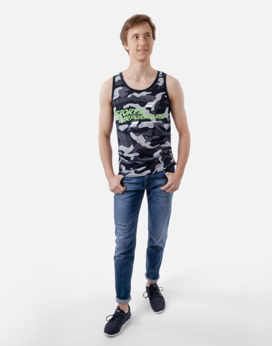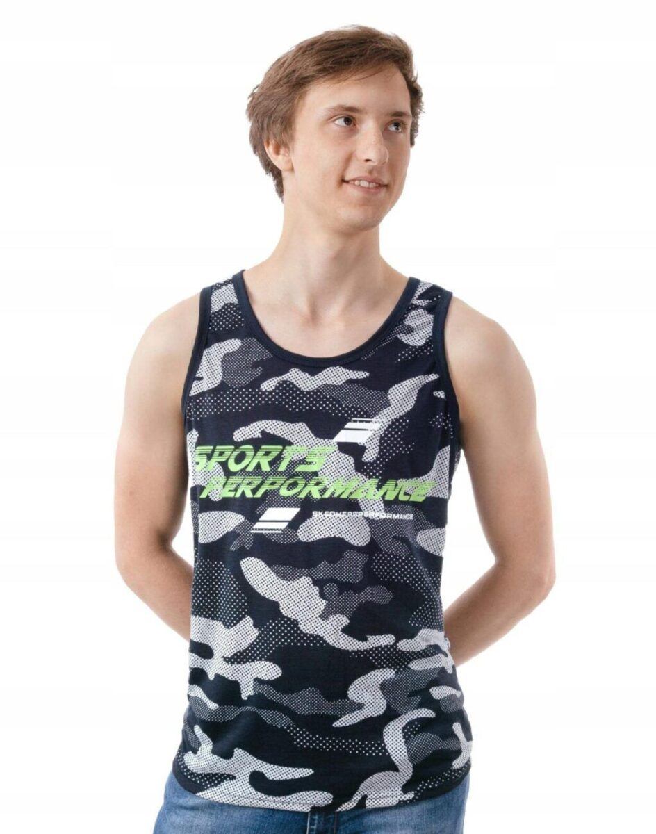 Sportowa koszulka męska moro bez rękawów Tank Top nie krępuje ruchów, jest wygodna a co najważniejsze cienka i przewiewna dzięki czemu jest sprawdzonym wyborem podczas aktywnego spędzania czasu. Odpowiedni krój koszulki nie ogranicza swobody ruchów a niewielka gramatura pozytywnie wpływa na komfort użytkowania czyniąc ją idealnie dostosowaną do wysokich temperatur. Na siłownię, trening, grę w piłkę, jogging, wypad za miasto i na co dzień. Pozbawiona rękawów jest bardzo lekka, przewiewna i niezawodna w czasie upałów. Bardzo prosta w swojej konstrukcji i w tym tkwi jej największa zaleta. Można ją założyć do krótkich spodenek lub połączyć ze sportową koszulą albo bluzą bo jest bardzo łatwa do łączenia z innymi ubraniami. Jeżeli lubisz czuć się wygodnie a komfort jest dla Ciebie tak samo ważny jak dobry wygląd to jest ona stworzona właśnie dla Ciebie.