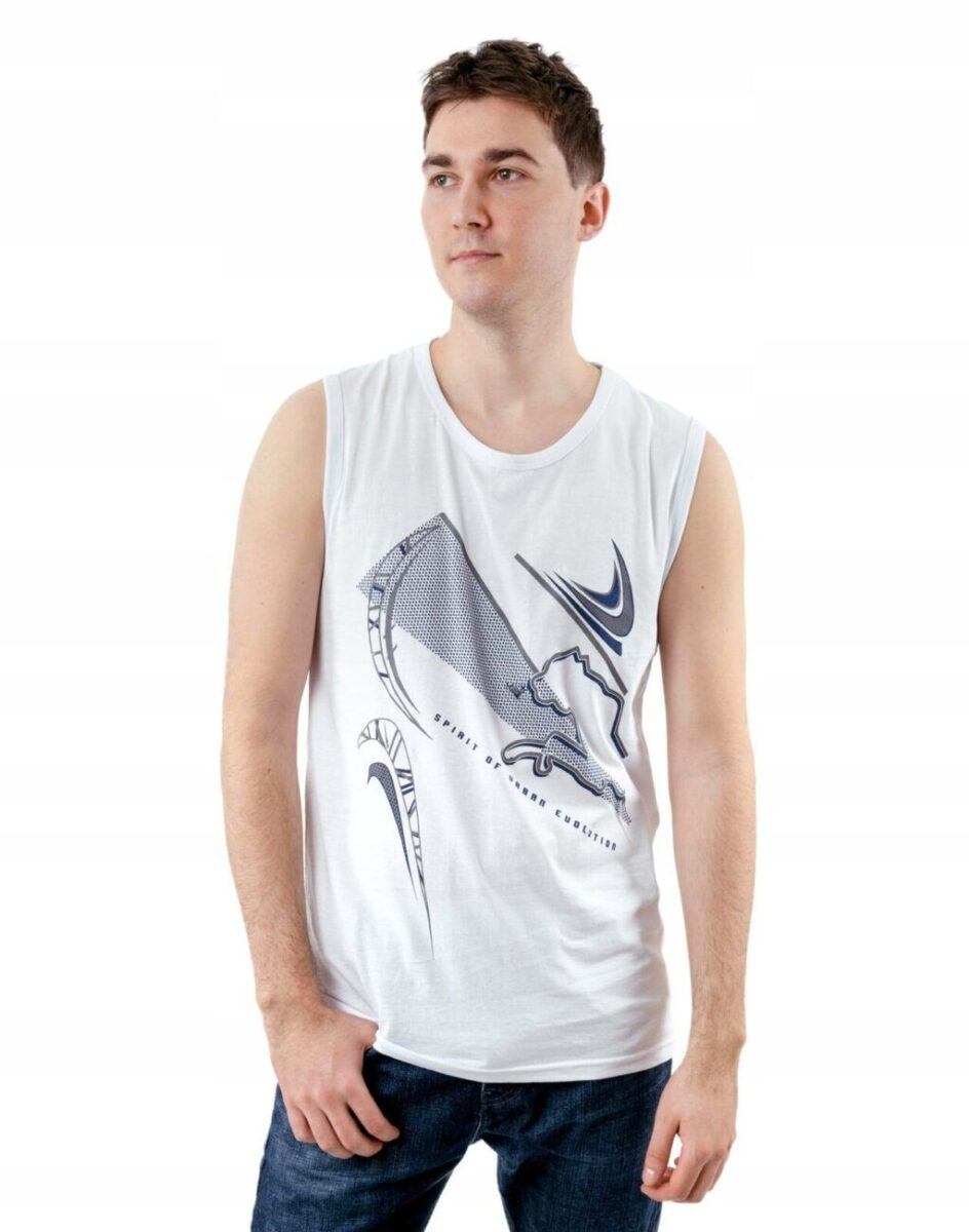 Sportowa koszulka męska bez rękawów Tank Top nie krępuje ruchów, jest wygodna a co najważniejsze cienka i przewiewna dzięki czemu jest sprawdzonym wyborem podczas aktywnego spędzania czasu. Odpowiedni krój koszulki nie ogranicza swobody ruchów a niewielka gramatura wpływa na komfort użytkowania czyniąc ją idealnie dostosowaną do wysokich temperatur. Na siłownię, trening, grę w piłkę, jogging, wypad za miasto i na co dzień. Pozbawiona rękawów jest bardzo lekka, przewiewna i niezawodna w czasie upałów. Bardzo prosta w swojej konstrukcji i w tym tkwi jej największa zaleta. Można ją założyć do krótkich spodenek lub połączyć ze sportową koszulą albo bluzą bo jest bardzo łatwa do łączenia z innymi ubraniami. Jeżeli lubisz czuć się wygodnie a komfort jest dla Ciebie tak samo ważny jak dobry wygląd to jest ona stworzona właśnie dla Ciebie.