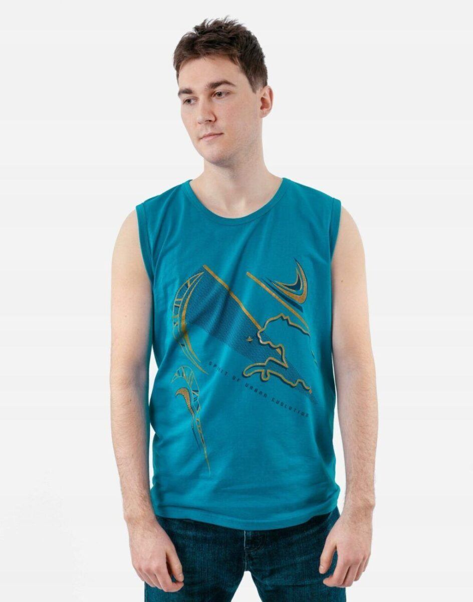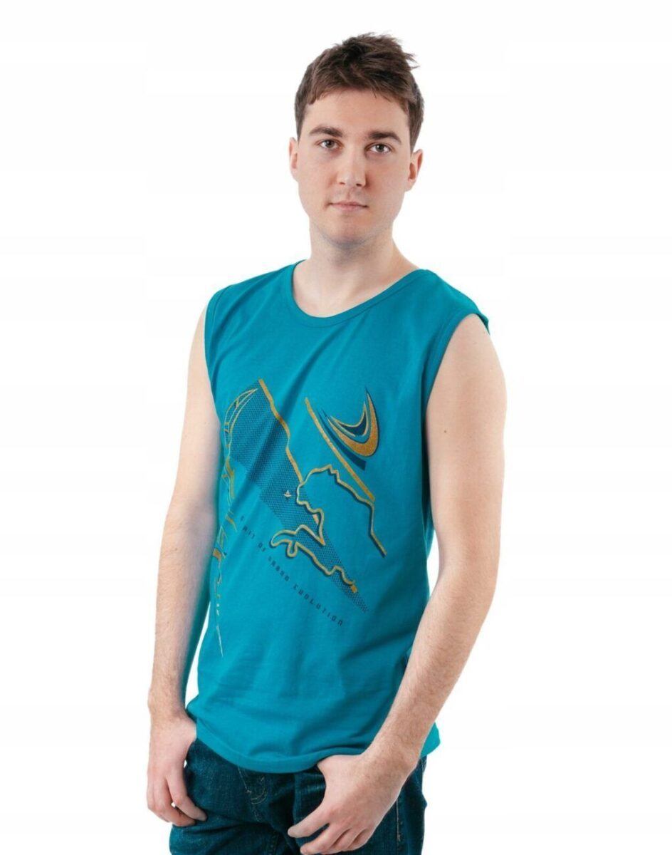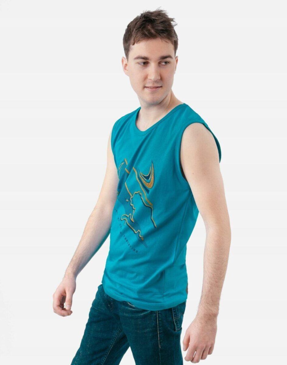 Sportowa koszulka męska bez rękawów Tank Top nie krępuje ruchów, jest wygodna a co najważniejsze cienka i przewiewna dzięki czemu jest sprawdzonym wyborem podczas aktywnego spędzania czasu. Odpowiedni krój koszulki nie ogranicza swobody ruchów a niewielka gramatura wpływa na komfort użytkowania czyniąc ją idealnie dostosowaną do wysokich temperatur. Na siłownię, trening, grę w piłkę, jogging, wypad za miasto i na co dzień. Pozbawiona rękawów jest bardzo lekka, przewiewna i niezawodna w czasie upałów. Bardzo prosta w swojej konstrukcji i w tym tkwi jej największa zaleta. Można ją założyć do krótkich spodenek lub połączyć ze sportową koszulą albo bluzą bo jest bardzo łatwa do łączenia z innymi ubraniami. Jeżeli lubisz czuć się wygodnie a komfort jest dla Ciebie tak samo ważny jak dobry wygląd to jest ona stworzona właśnie dla Ciebie.