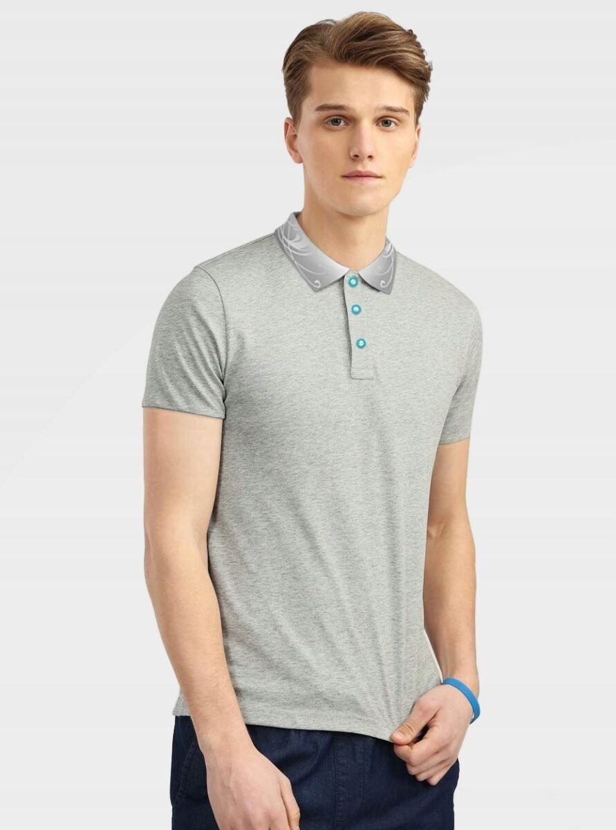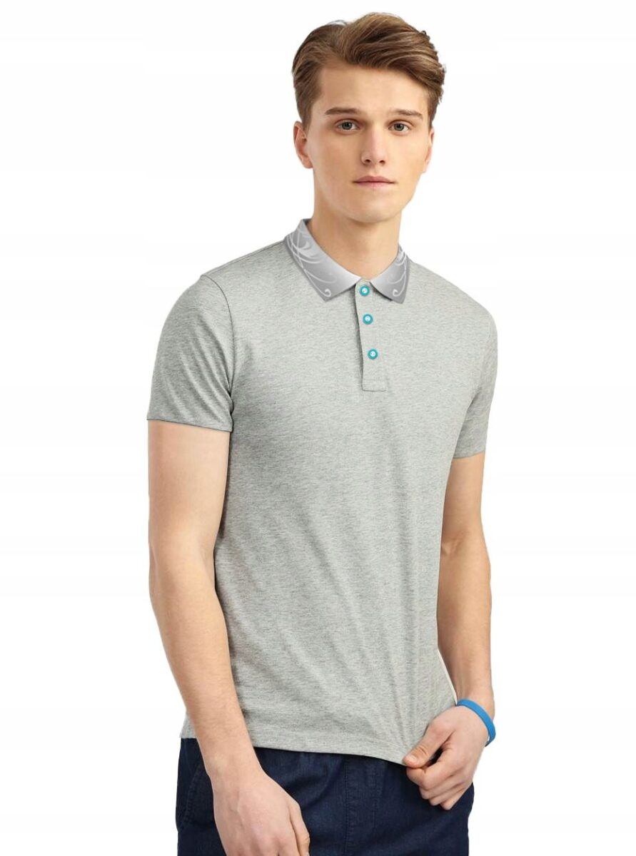 Koszulka tupu Polo to krój, który nigdy nie wychodzi z mody, z każdym sezonem zaskakuje i jest ciekawą alternatywą dla gładkich T-shirtów i koszul. Kołnierzyk typu polo z modnym delikatnym wzorem charakteryzuje się pewną sztywnością dzięki której znakomicie leży. Zapinana pod szyją na 3 ozdobne guziki. Luźny fason odpowiednio wykrojony do noszenia na wierzchu nie ogranicza swobody ruchów, a niewielka gramatura wpływa na komfort użytkowania. Świetna zarówno do uprawiania sportu jak i do noszenia na co dzień.. Materiał typu Piqué najwyższej jakości miły i przyjemny w dotyku, idealny na ciepłe i gorące dni wiosny i lata. Wyjątkowa struktura tkaniny gwarantuje przepuszczalność powietrza i komfort w czasie aktywności fizycznej. Zewnętrzna strona materiału posiada strukturę, która przypomina pikę, wewnętrzna strona gładka.