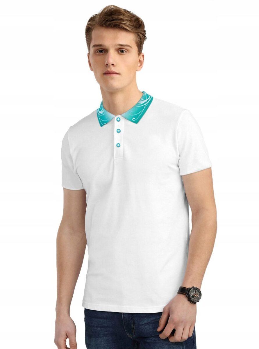 Koszulka tupu Polo to krój, który nigdy nie wychodzi z mody, z każdym sezonem zaskakuje i jest ciekawą alternatywą dla gładkich T-shirtów i koszul. Kołnierzyk typu polo z modnym delikatnym wzorem charakteryzuje się pewną sztywnością dzięki której znakomicie leży. Zapinana pod szyją na 3 ozdobne guziki. Luźny fason odpowiednio wykrojony do noszenia na wierzchu nie ogranicza swobody ruchów, a niewielka gramatura wpływa na komfort użytkowania. Świetna zarówno do uprawiania sportu jak i do noszenia na co dzień.. Materiał typu Piqué najwyższej jakości miły i przyjemny w dotyku, idealny na ciepłe i gorące dni wiosny i lata. Wyjątkowa struktura tkaniny gwarantuje przepuszczalność powietrza i komfort w czasie aktywności fizycznej. Zewnętrzna strona materiału posiada strukturę, która przypomina pikę, wewnętrzna strona  gładka.