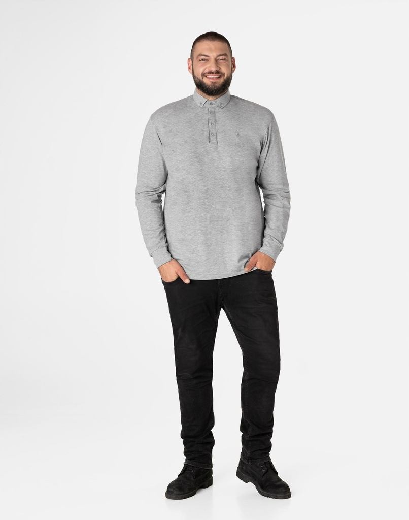 Komfortowa koszulka/bluza męska Longsleevetypu Polo do codziennego użytku z długim rękawem i wykładanym kołnierzykiem typu Kent zapinanym na guziki, to krój który nigdy nie wychodzi z mody, z każdym sezonem zaskakuje i jest ciekawą alternatywą dla gładkich T-shirtów i koszul. Wykonana z wysokiej jakości naturalnej, miękkiej, ekologicznej dzianiny bawełnianej typu dżersej z niewielkim dodatkiem elastanu, co zapewnia duży komfort noszenia i ozdobiona na lewej piersi niewielkim firmowym logo w nowoczesnym designie. Naturalna bawełna gwarantuje wchłanianie potu i oddychanie skóry a dodatek elastanu to gwarancja pełnej swobody ruchów oraz stabilności rozmiarów i kolorów po wielokrotnym praniu. Zapinana pod szyją na 4 guziki a wykładany kołnierzyk typu Kent charakteryzuje się pewną sztywnością, dzięki której znakomicie leży. Rękawy zakończone są szerokim, elastycznym ściągaczem. Świetna zarówno do uprawiania sportu jak i do noszenia na co dzień.