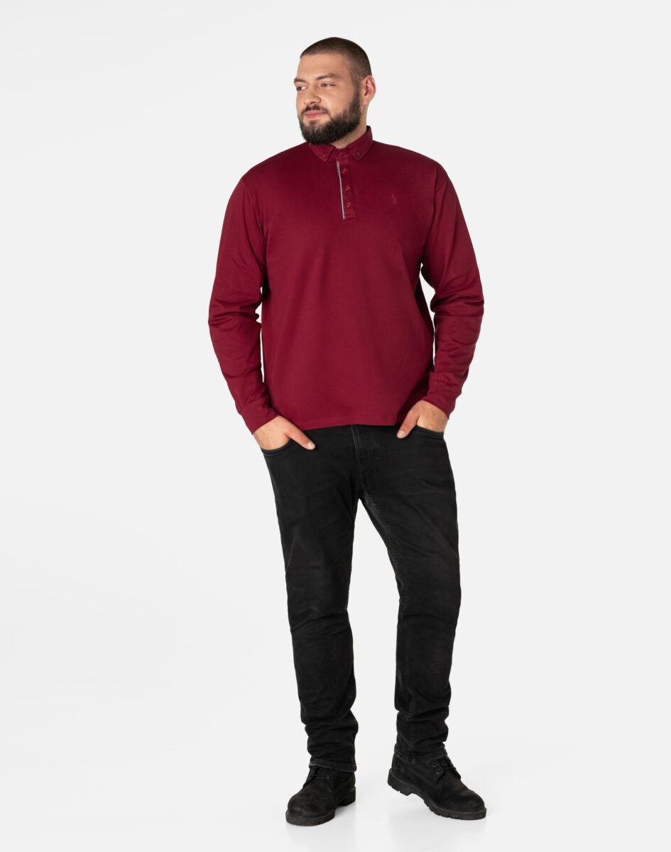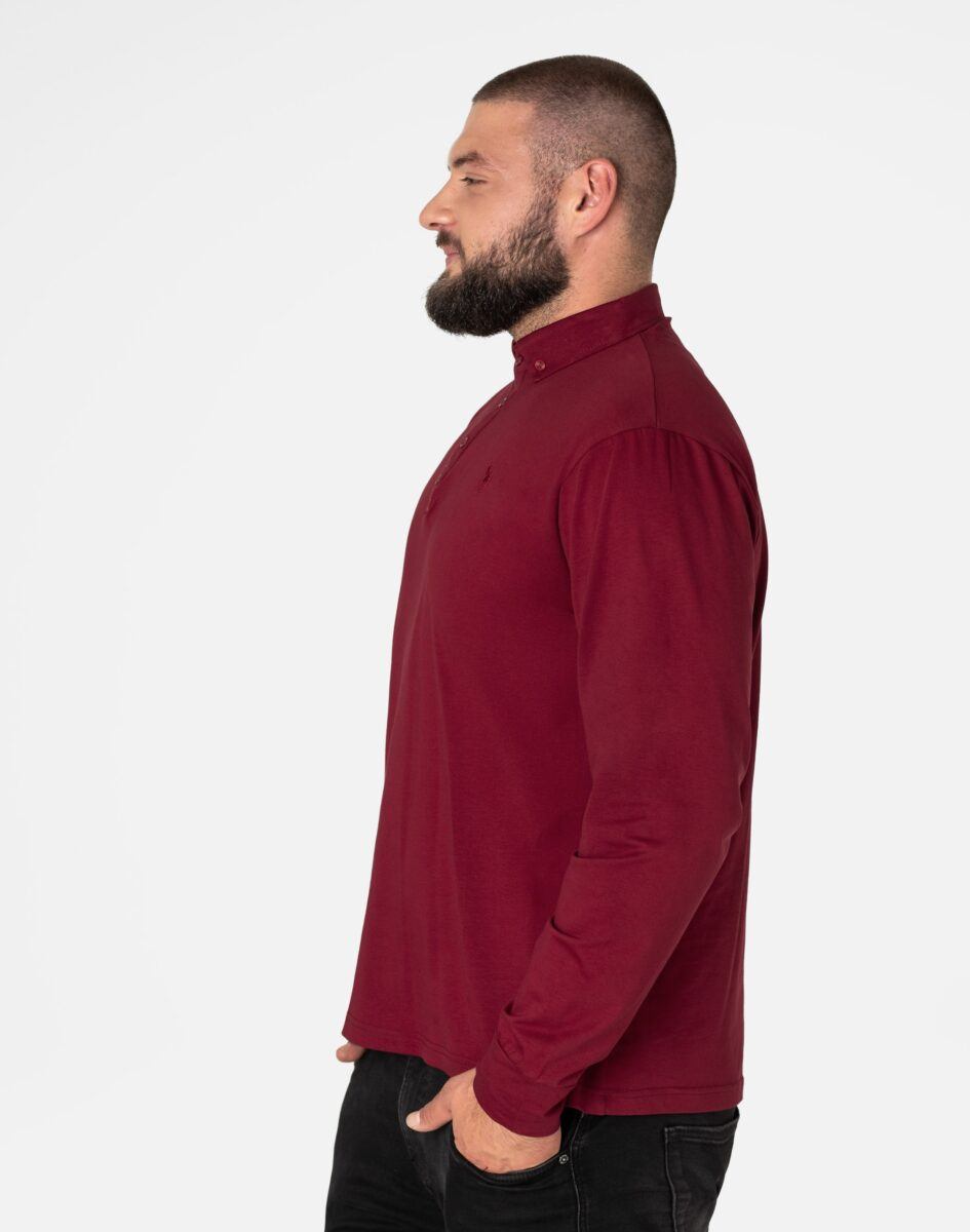Komfortowa koszulka/bluza męska Longsleevetypu Polo do codziennego użytku z długim rękawem i wykładanym kołnierzykiem typu Kent zapinanym na guziki, to krój który nigdy nie wychodzi z mody, z każdym sezonem zaskakuje i jest ciekawą alternatywą dla gładkich T-shirtów i koszul. Wykonana z wysokiej jakości naturalnej, miękkiej, ekologicznej dzianiny bawełnianej typu dżersej z niewielkim dodatkiem elastanu, co zapewnia duży komfort noszenia i ozdobiona na lewej piersi niewielkim firmowym logo w nowoczesnym designie. Naturalna bawełna gwarantuje wchłanianie potu i oddychanie skóry a dodatek elastanu to gwarancja pełnej swobody ruchów oraz stabilności rozmiarów i kolorów po wielokrotnym praniu. Zapinana pod szyją na 4 guziki a wykładany kołnierzyk typu Kent charakteryzuje się pewną sztywnością, dzięki której znakomicie leży. Rękawy zakończone są szerokim, elastycznym ściągaczem. Świetna zarówno do uprawiania sportu jak i do noszenia na co dzień.