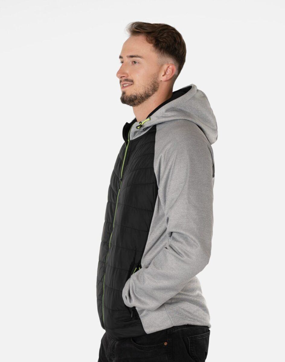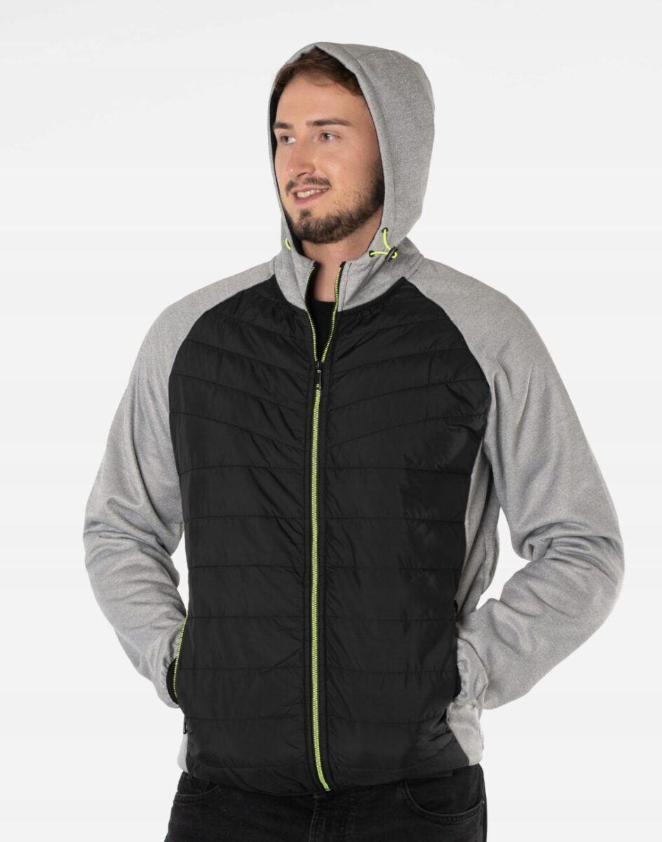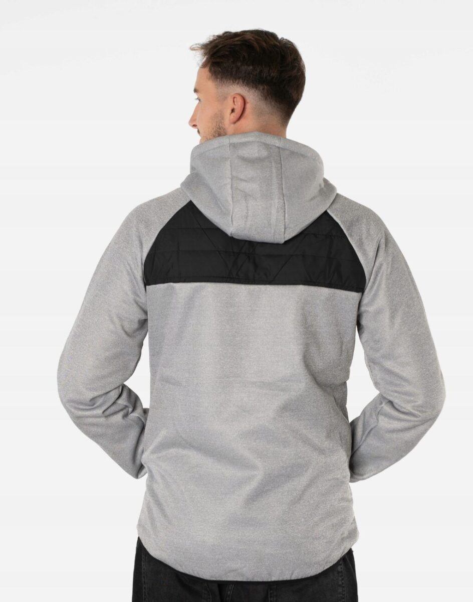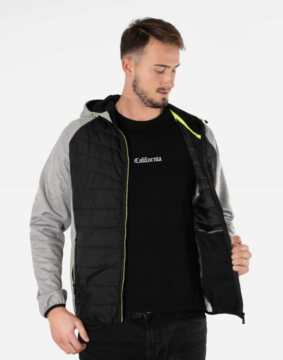 Kurtka/bluza sportowa J.Style efektownie pikowana i zasuwana w całości na zamek błyskawiczny. Z przodu lekko ocieplona pikowanymi panelami z puchem syntetycznym a wewnętrzna strona bluzy posiada wykończenie typu „MESCH” (fabrycznie wykończona jest miłym w dotyku i przyjemnym dla ciała meszkiem tzw. „szczotkowana”) zapewniające bardzo przyjemny kontakt ze skórą oraz komfort cieplny. Zewnętrzna powierzchnia jest gładka. Na bokach posiada dwie wpuszczane kieszenie na dłonie zasuwane na efektowne kolorowe zamki błyskawiczne a od wewnętrznej strony dwie duże kieszenie naszywane. Wysoki, ocieplony kołnierz/stójka skutecznie chroni podbródek i szyję a często zastępuje nawet szalik co jest bardzo wygodne. Praktyczny, lekko ocieplony zintegrowany kaptur skutecznie osłania głowę przed zimnem i wiatrem. Dół kurtki i rękawy wykończone są ściągaczem co pozwala na precyzyjne dopasowanie kurtki do ciała, zapobiega utracie ciepła i skutecznie chroni przed podmuchami wiatru. Modny układ pikowanych paneli został efektownie połączony ze wstawkami z gładkiej dzianiny tworząc najmodniejszy obecnie styl prezentowany szeroko na sportowych modowych blogach.