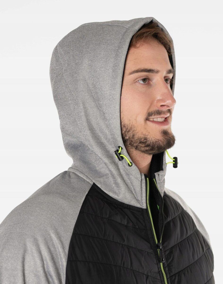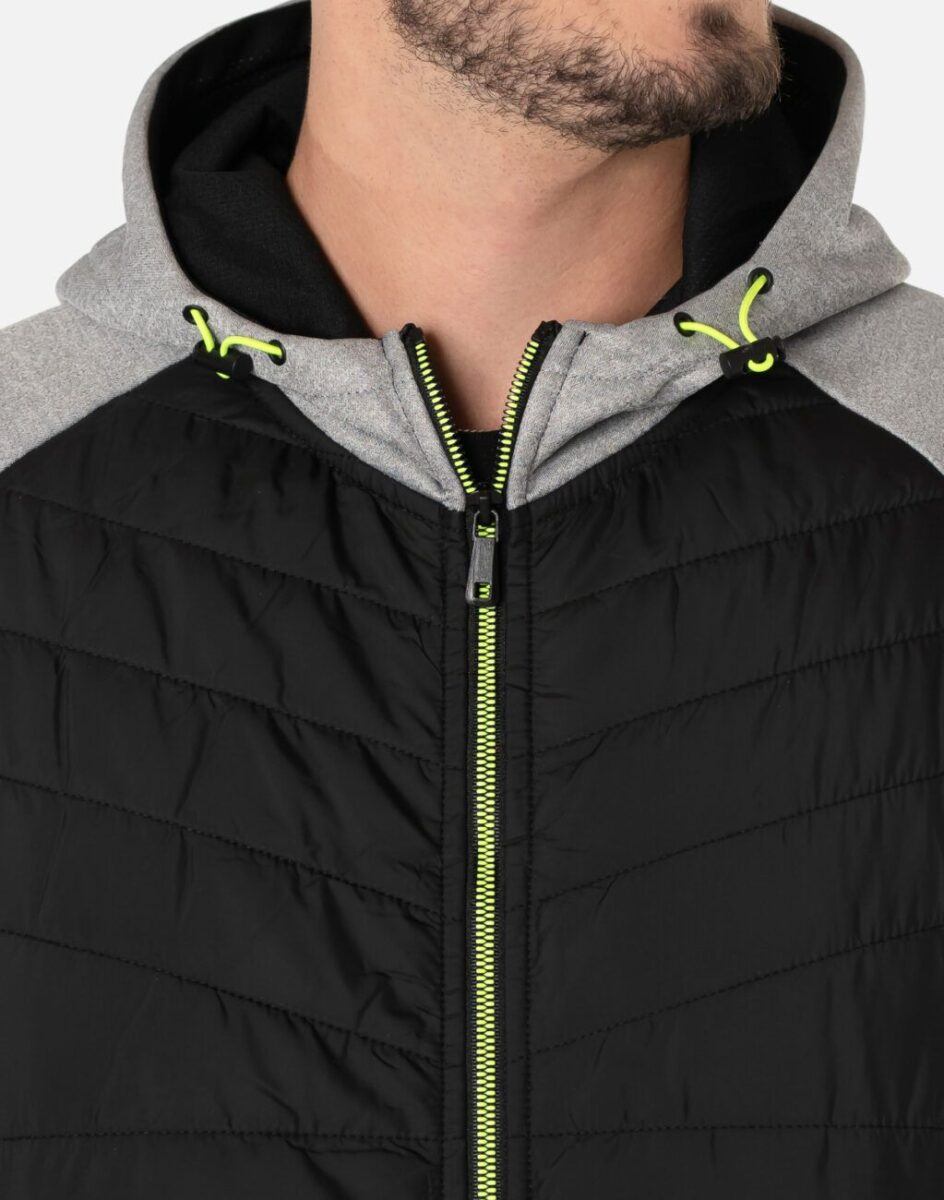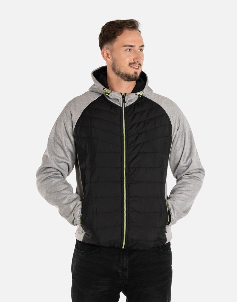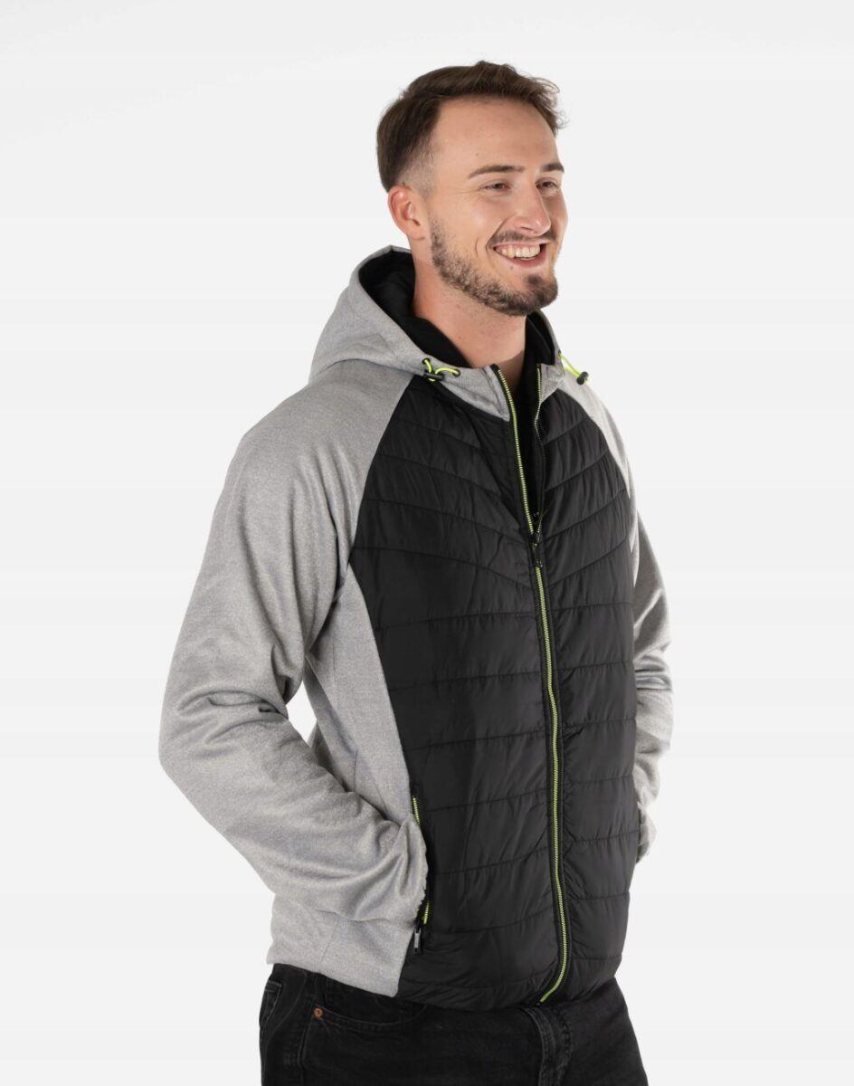 Kurtka/bluza sportowa J.Style efektownie pikowana i zasuwana w całości na zamek błyskawiczny. Z przodu lekko ocieplona pikowanymi panelami z puchem syntetycznym a wewnętrzna strona bluzy posiada wykończenie typu „MESCH” (fabrycznie wykończona jest miłym w dotyku i przyjemnym dla ciała meszkiem tzw. „szczotkowana”) zapewniające bardzo przyjemny kontakt ze skórą oraz komfort cieplny. Zewnętrzna powierzchnia jest gładka. Na bokach posiada dwie wpuszczane kieszenie na dłonie zasuwane na efektowne kolorowe zamki błyskawiczne a od wewnętrznej strony dwie duże kieszenie naszywane. Wysoki, ocieplony kołnierz/stójka skutecznie chroni podbródek i szyję a często zastępuje nawet szalik co jest bardzo wygodne. Praktyczny, lekko ocieplony zintegrowany kaptur skutecznie osłania głowę przed zimnem i wiatrem. Dół kurtki i rękawy wykończone są ściągaczem co pozwala na precyzyjne dopasowanie kurtki do ciała, zapobiega utracie ciepła i skutecznie chroni przed podmuchami wiatru. Modny układ pikowanych paneli został efektownie połączony ze wstawkami z gładkiej dzianiny tworząc najmodniejszy obecnie styl prezentowany szeroko na sportowych modowych blogach.