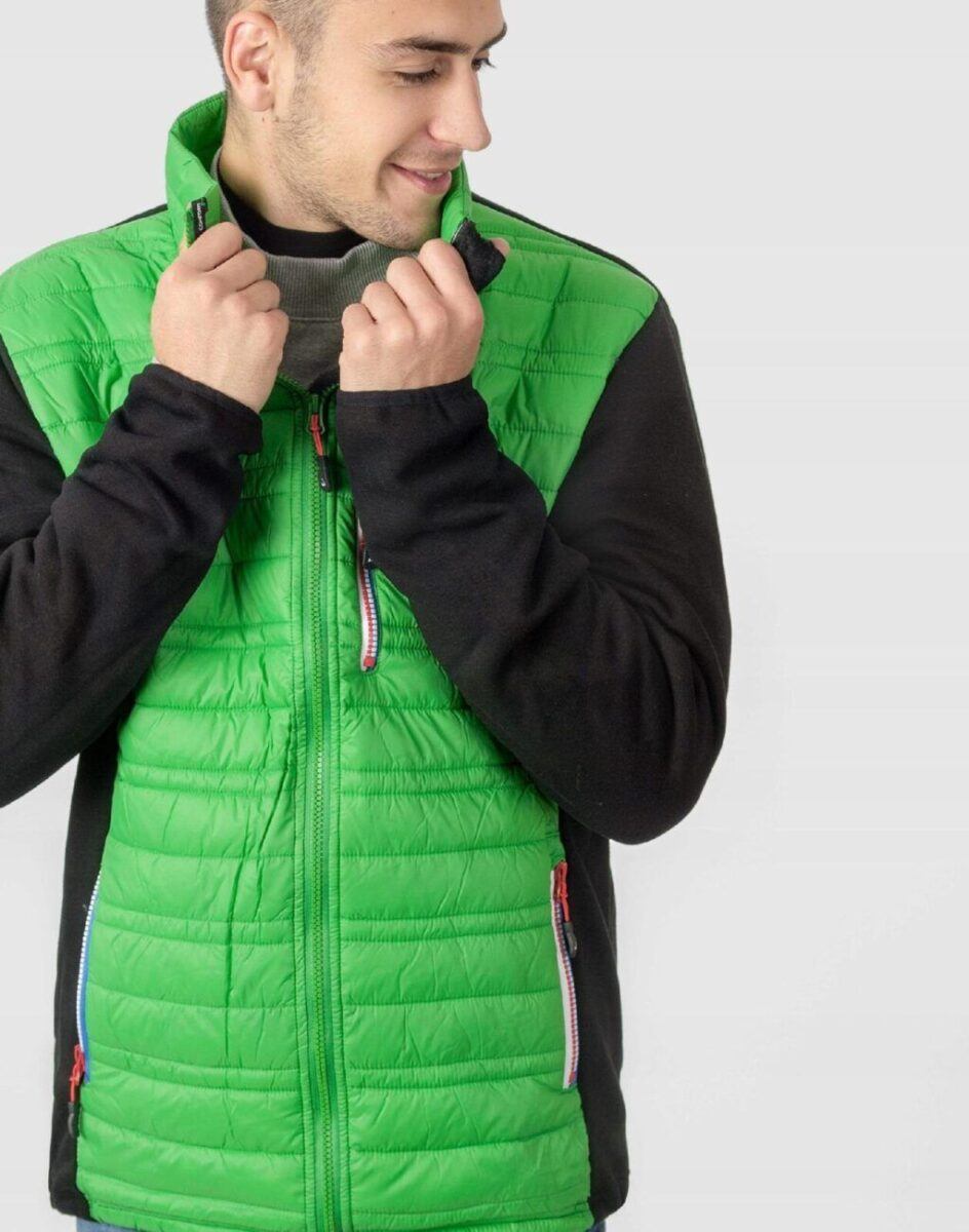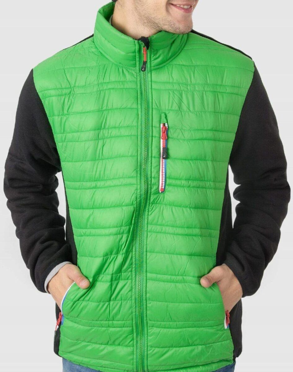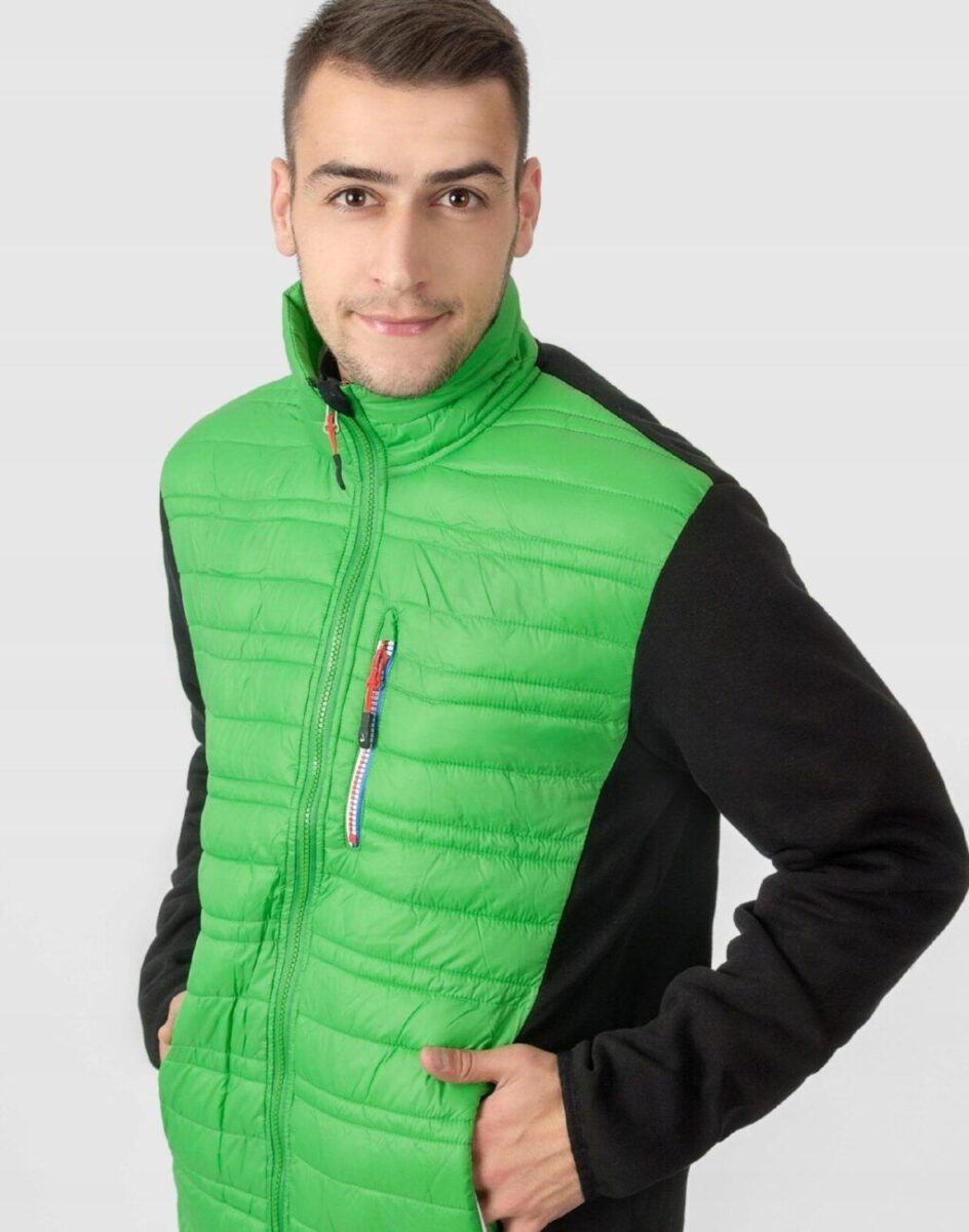 Kurtka/bluza TEMSTER zasuwana jest w całości na zamek błyskawiczny wraz z wysokim kołnierzem-stójką. Z przodu lekko ocieplona pikowanymi panelami z puchem syntetycznym, a od wewnętrznej strony miłym w dotyku i przyjemnym dla ciała delikatnym, cienkim futerkiem. Na bokach posiada dwie wpuszczane kieszenie na dłonie oraz pojedynczą kieszeń na lewej piersi, wszystkie zasuwane na efektowne kolorowe zamki błyskawiczne. Od wewnętrznej strony dwie duże kieszenie naszywane. Rękawy zakończone delikatnym elastycznym ściągaczem. Dół kurtki/bluzy regulowany elastycznym sznurkiem i stoperami który pozwala na precyzyjne dopasowanie jej do ciała i zapobiega utracie ciepła. Modny układ pikowanych paneli został efektownie połączony ze wstawkami z gładkiej dzianiny tworząc najmodniejszy obecnie styl prezentowany szeroko na sportowych modowych blogach.