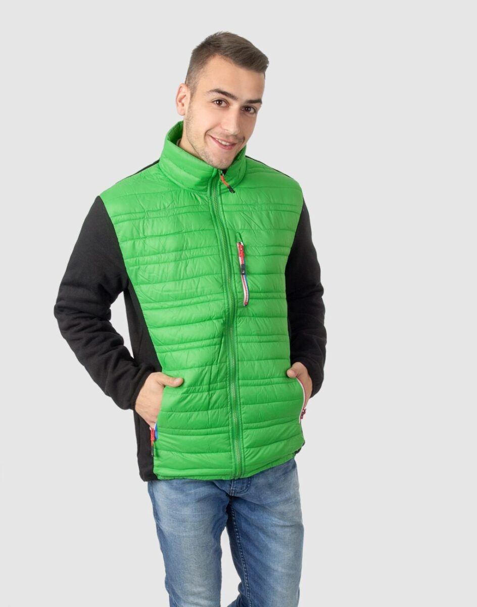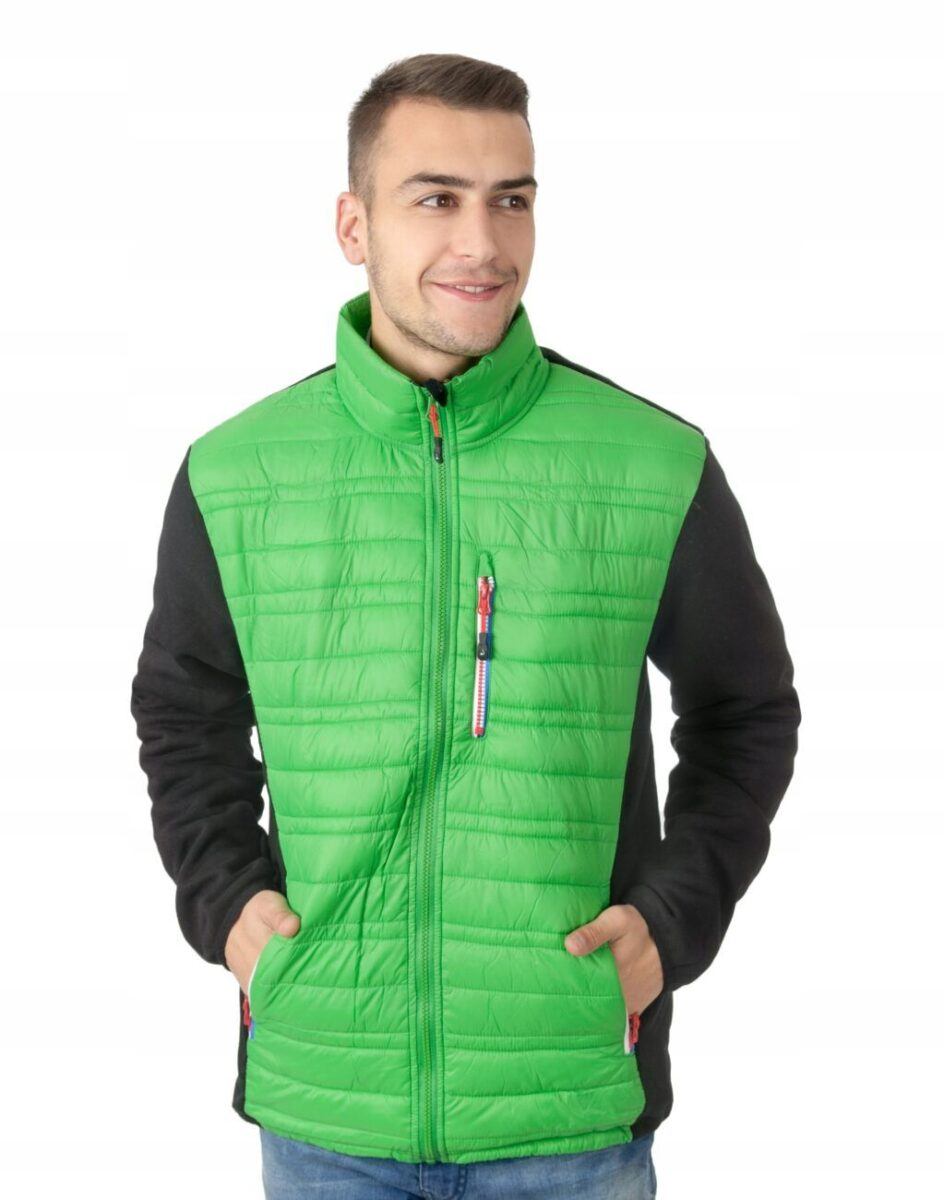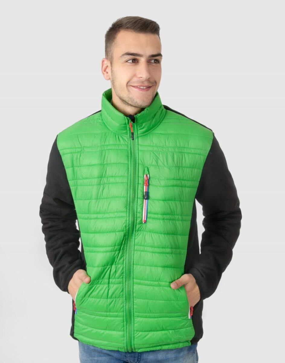 Kurtka/bluza TEMSTER zasuwana jest w całości na zamek błyskawiczny wraz z wysokim kołnierzem-stójką. Z przodu lekko ocieplona pikowanymi panelami z puchem syntetycznym, a od wewnętrznej strony miłym w dotyku i przyjemnym dla ciała delikatnym, cienkim futerkiem. Na bokach posiada dwie wpuszczane kieszenie na dłonie oraz pojedynczą kieszeń na lewej piersi, wszystkie zasuwane na efektowne kolorowe zamki błyskawiczne. Od wewnętrznej strony dwie duże kieszenie naszywane. Rękawy zakończone delikatnym elastycznym ściągaczem. Dół kurtki/bluzy regulowany elastycznym sznurkiem i stoperami który pozwala na precyzyjne dopasowanie jej do ciała i zapobiega utracie ciepła. Modny układ pikowanych paneli został efektownie połączony ze wstawkami z gładkiej dzianiny tworząc najmodniejszy obecnie styl prezentowany szeroko na sportowych modowych blogach.
