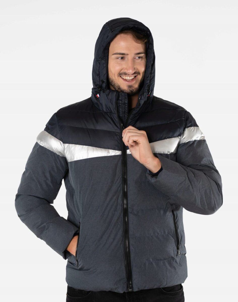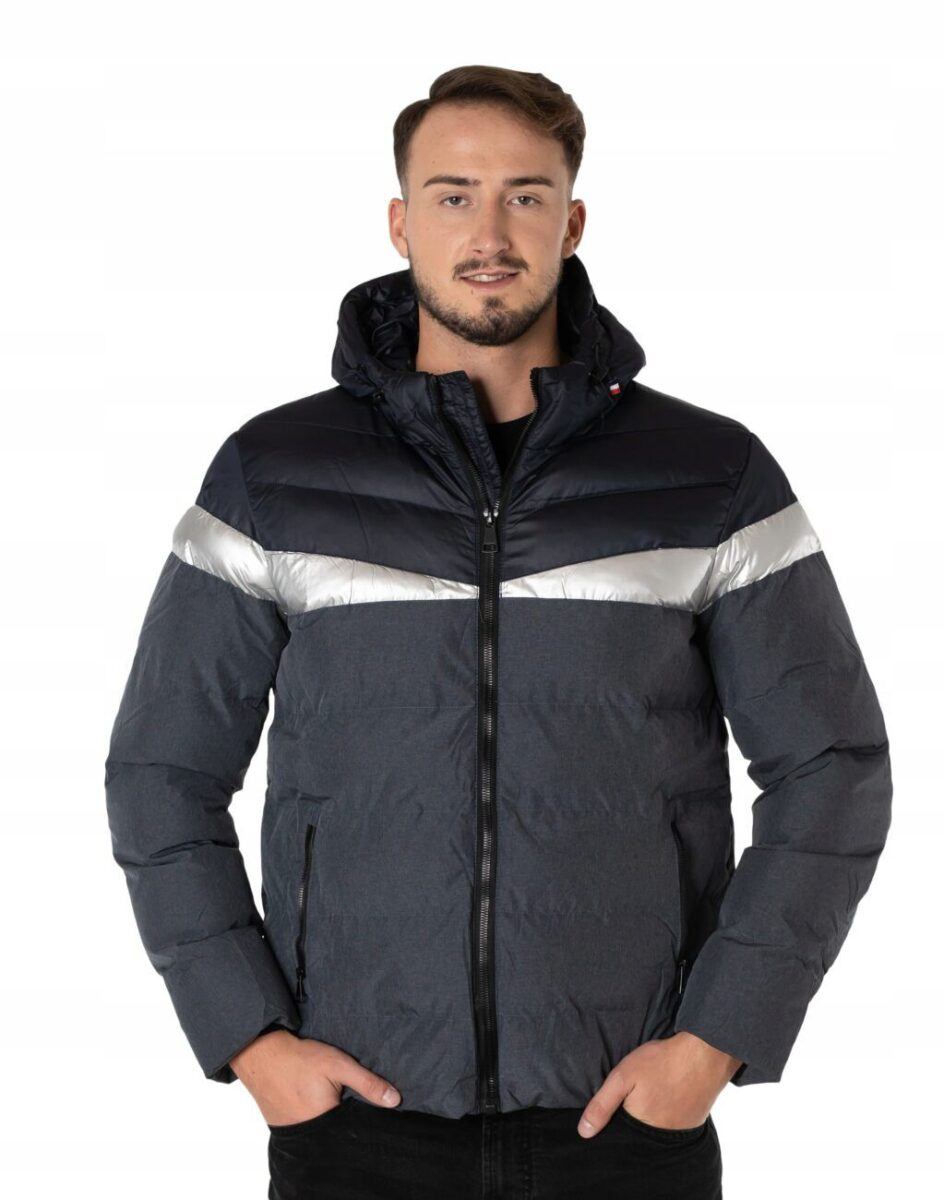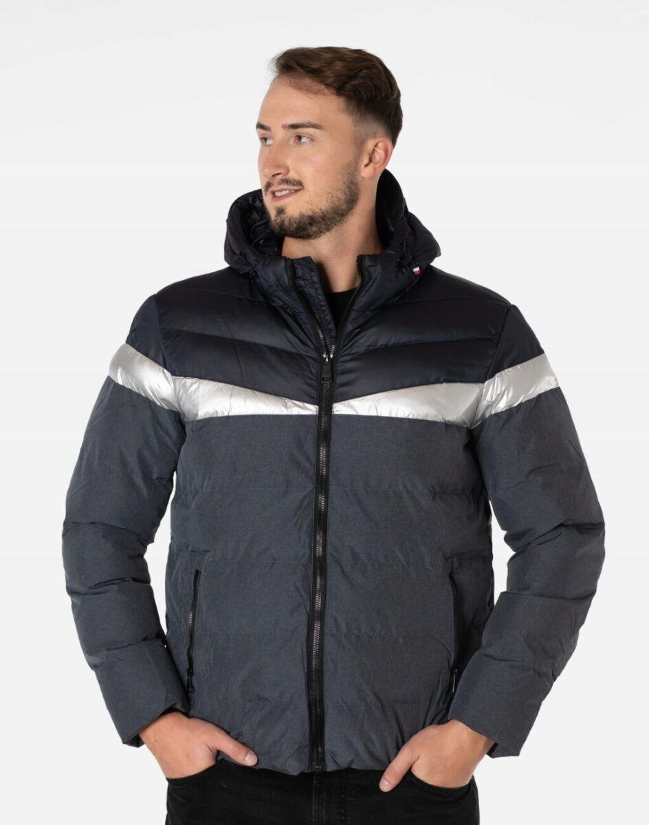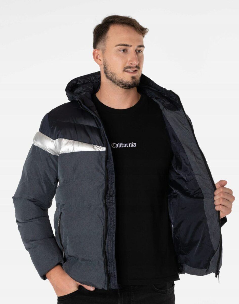 Wyjątkowo ciepła bo ocieplona w całości puchem syntetycznym kurtka męska firmy LANTER SPORTS WEAR to doskonałe i ponadczasowe okrycie wierzchnie na sezon przejściowy i zimowy. Kurtka jest modnie pikowana (aby w powstałych „kieszonkach” zmieścić jak najwięcej grzejącego surowca), zasuwana w całości na firmowy zamek błyskawiczny wraz z wysokim kołnierzem-stójką i ozdobiona najmodniejszymi obecnie metalicznymi wstawkami. Na bokach kurtki znajdują się dwie wpuszczane kieszenie na dłonie, zasuwane na zamki błyskawiczne. Zintegrowany, regulowany w 3D za pomocą taśmy ściągającej i stoperów ocieplony puchem syntetycznym kaptur osłoni Twoją głowę przed deszczem, wiatrem i chłodem, a wysoki kołnierz/stójka skutecznie chroni podbródek i szyję, a często zastępuje nawet szalik co jest bardzo wygodne. Materiał zewnętrzny jest wiatroszczelny i posiada wykończenie typu Water Repellency, które zapobiega nasączeniu warstwy zewnętrznej wodą. Wewnętrzna strona kurtki wykończona jest materiałową podszewką. Elastyczne ściągacze w rękawach skutecznie zapobiegają utracie ciepła i chronią przed podmuchami zimnego wiatru. Dół kurtki jest regulowany wewnętrzną taśmą ściągającą ze stoperami co zapewnia indywidualne dopasowanie. Długość do bioder, która trzyma ciepło i przytulność przy zmiennej pogodzie. Nie krępuje ruchów i z powodzeniem zakrywa części ciała wrażliwe na chłód jak plecy na wysokości nerek i pośladki.