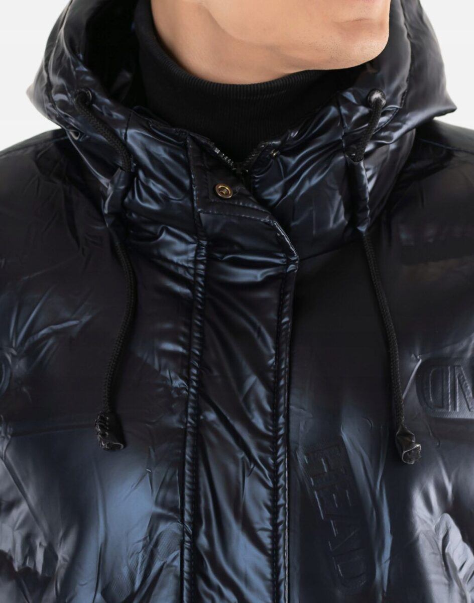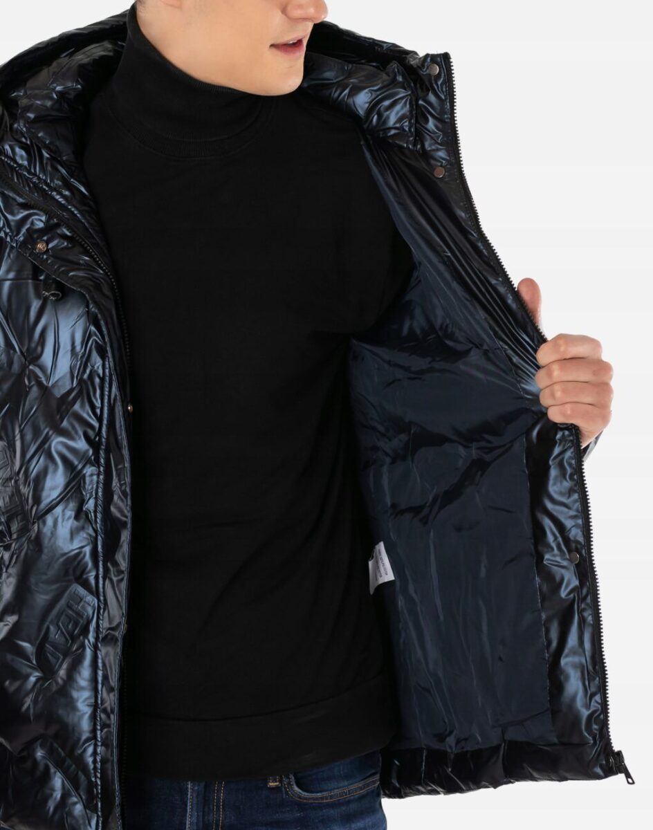 - Struktura/rodzaj materiału: gładki, metaliczny, wodoodporny, wiatroszczelny, ocieplany z modnymi tłoczonymi napisami