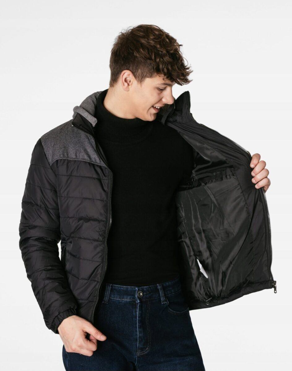 Ciepła Kurtka Męska Pikowana Wodoodporna i Wiatroszczelna z Odpinanym Kapturem FREESTEP