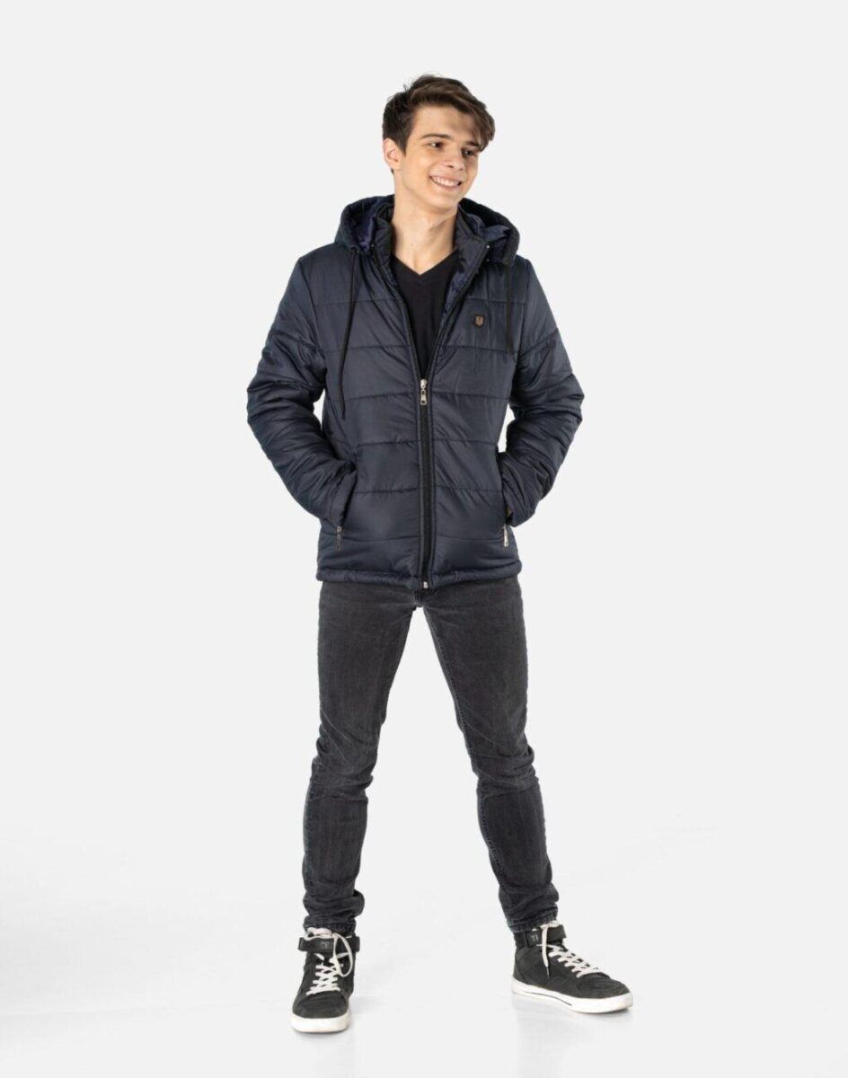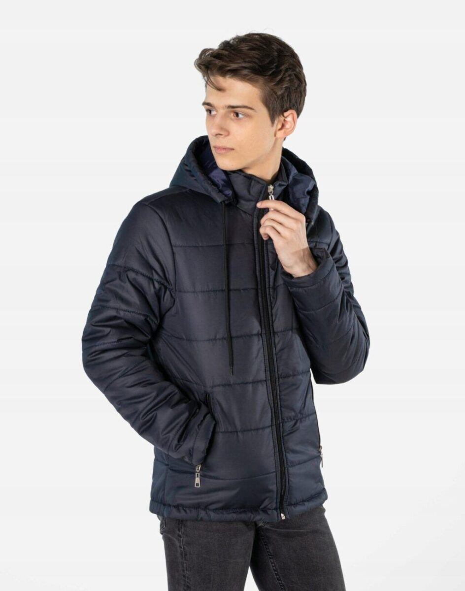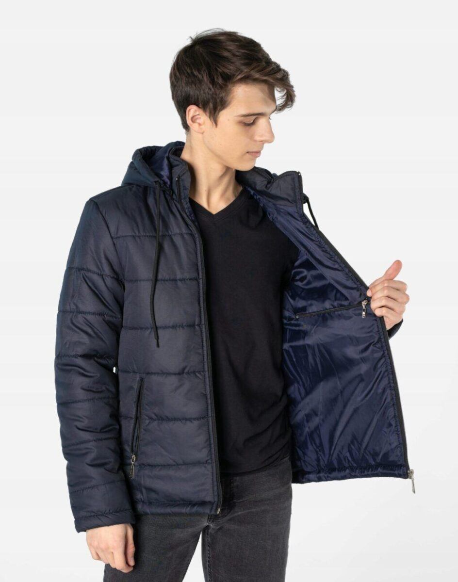 Ciepła bo ocieplona w całości puchem syntetycznym kurtka męska firmy RIVI SPORT to doskonałe i ponadczasowe okrycie wierzchnie na sezon przejściowy i zimowy. Kurtka jest modnie pikowana (aby w powstałych „kieszonkach” zmieścić jak najwięcej grzejącego surowca) i zasuwana w całości na zamek błyskawiczny wraz z wysokim kołnierzem-stójką. Na bokach kurtki znajdują się dwie wpuszczane kieszenie na dłonie, zasuwane na zamki błyskawiczne, wewnątrz na lewej piersi wpuszczana kieszeń na portfel, dokumenty, telefon kom. itp. zasuwana również na zamek. Regulowany za pomocą taśmy ściągającej ocieplony i odpinany na zamek błyskawiczny kaptur osłoni Twoją głowę przed deszczem, wiatrem i chłodem, a wysoki kołnierz/stójka skutecznie chroni podbródek i szyję, a często zastępuje nawet szalik co jest bardzo wygodne. Materiał zewnętrzny jest wiatroszczelny i posiada wykończenie typu Water Repellency, które zapobiega nasączeniu warstwy zewnętrznej wodą. Wewnętrzna strona kurtki wykończona jest materiałową podszewką. Długość do bioder, która trzyma ciepło i przytulność przy zmiennej pogodzie. Nie krępuje ruchów i z powodzeniem zakrywa części ciała wrażliwe na chłód jak plecy na wysokości nerek i pośladki.