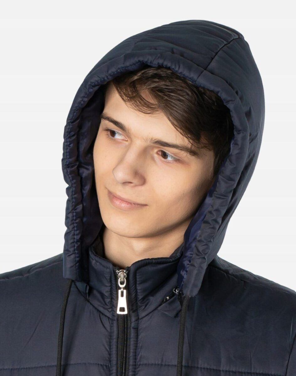 - Fason: puchowa, pikowana ze stójką i odpinanym kapturem