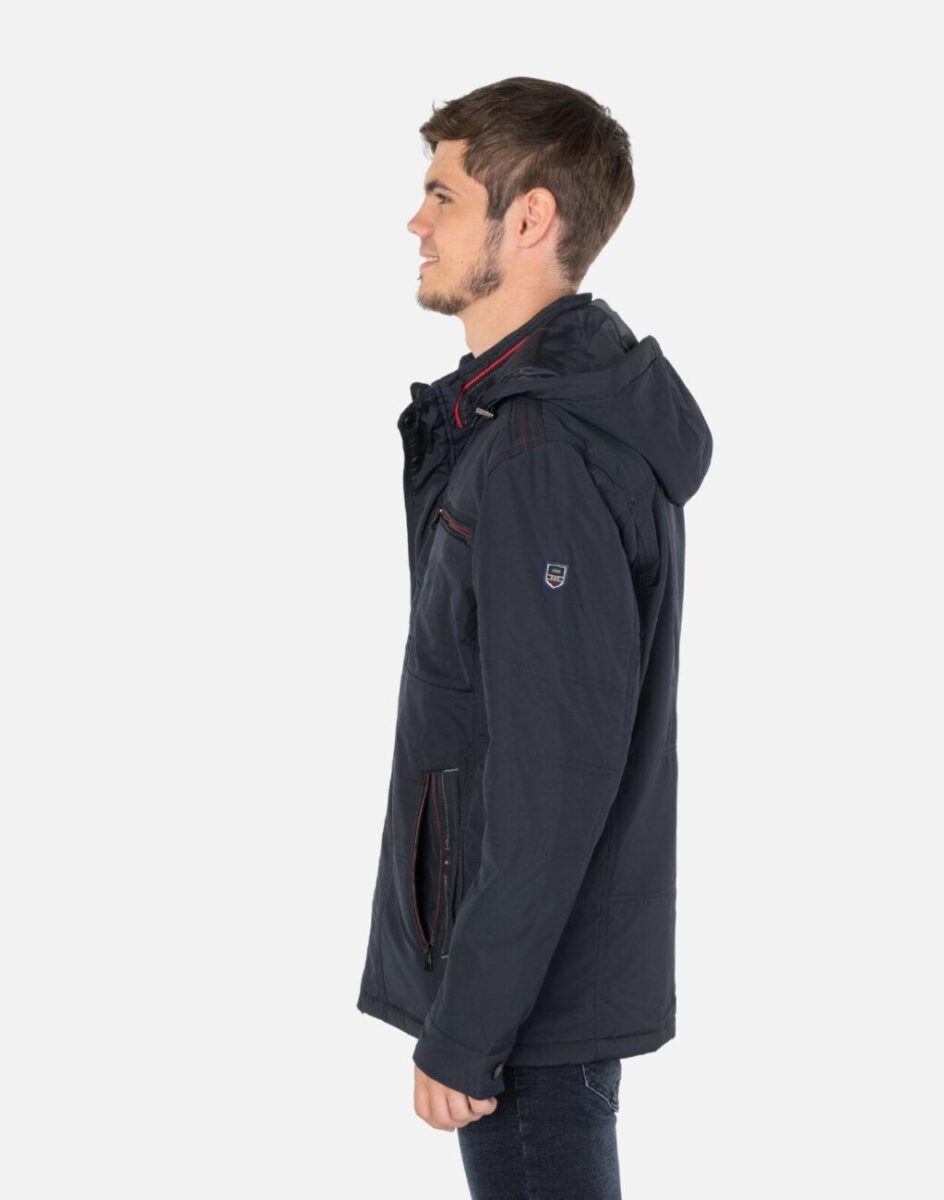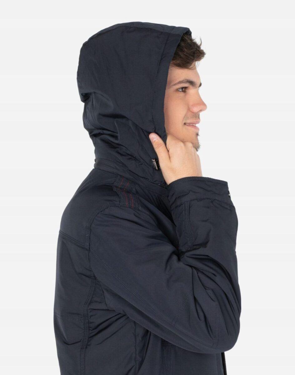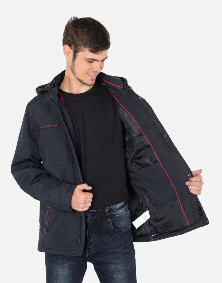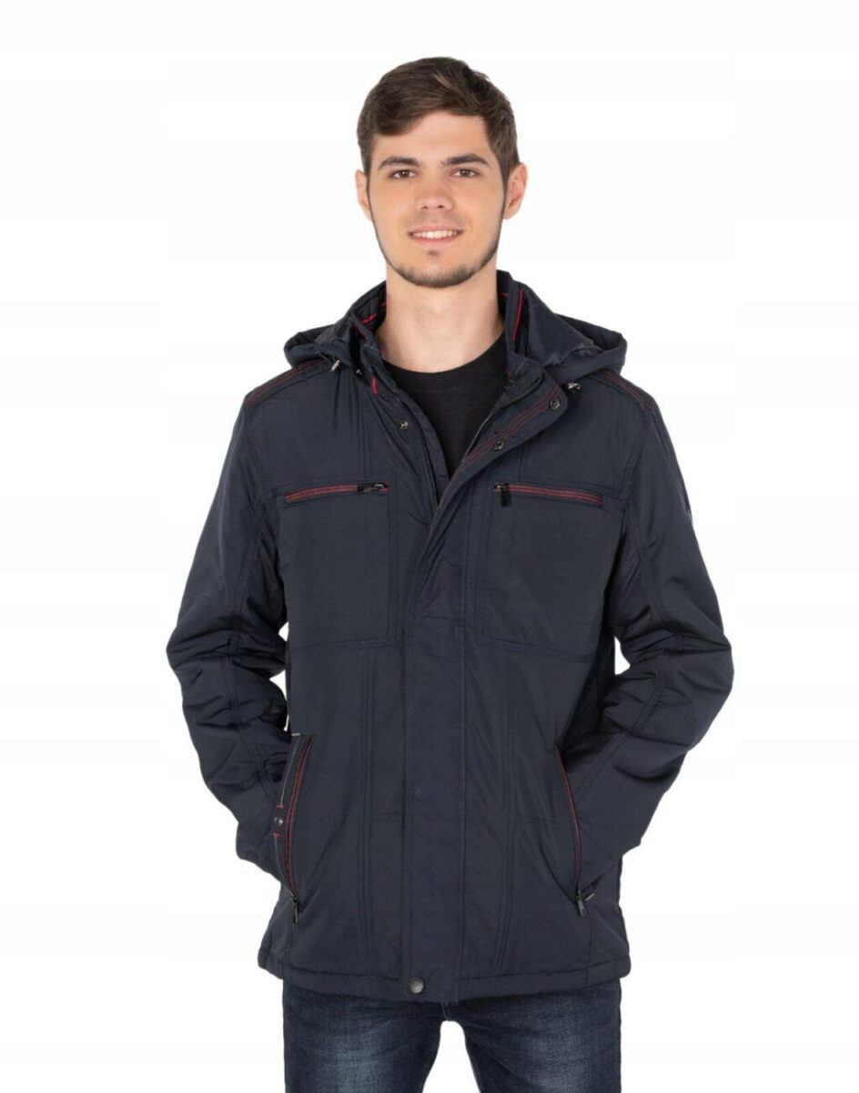 Na przodzie cztery wpuszczane kieszenie na dłonie z czego dwie zasuwane na zamki błyskawiczne. Na piersiach dwie mniejsze kieszonki zasuwane również na zamki błyskawiczne. Od wewnętrznej strony dwie kieszenie naszywane zapinane na rzepy oraz kieszeń na portfel, dokumenty, telefon komórkowy MP3 itp. zasuwana na suwak. Wysoki kołnierz/stójka zasłania szyję i chroni gardło a często zastępuje nawet szalik co jest bardzo wygodne i skutecznie chroni przed zimnem i wiatrem. Praktyczny ocieplony i odpinany na zamek błyskawiczny kaptur z możliwością regulacji jego wielkości i dopasowania ściągaczem i stoperem osłoni Twoją głowę przed deszczem, wiatrem i chłodem. Ściągacze regulacyjne na dole kurtki oraz przy kapturze z gumką i stoperem, a w rękawach mankiety regulowane na napy pozwalają na precyzyjne dopasowanie kurtki do ciała, co znacznie zapobiega utracie ciepła i skutecznie chroni przed podmuchami wiatru. Wewnętrzna strona kurtki wykończona jest materiałową podszewką.