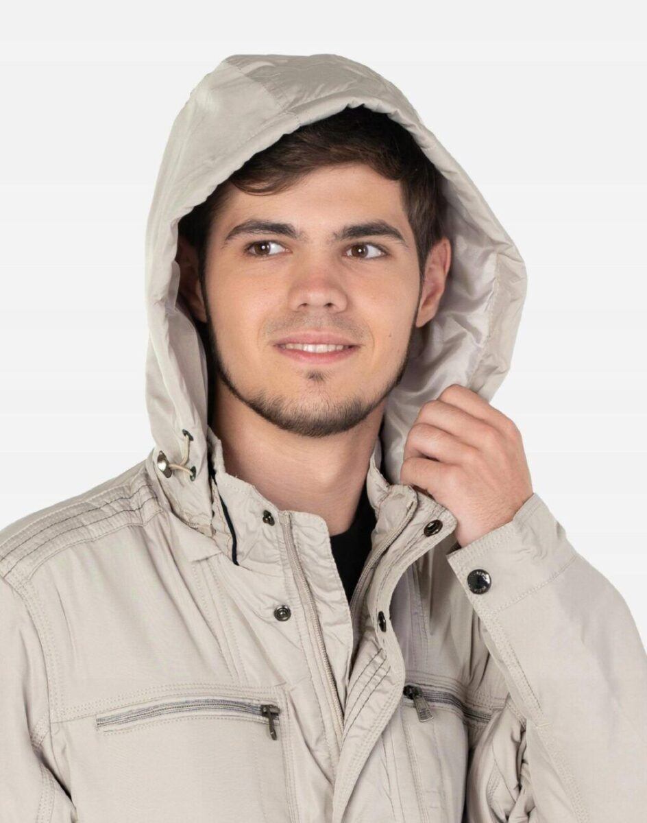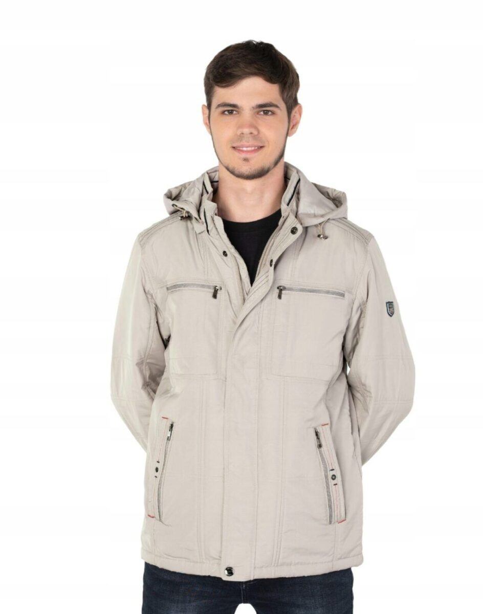 Na przodzie cztery wpuszczane kieszenie na dłonie z czego dwie zasuwane na zamki błyskawiczne. Na piersiach dwie mniejsze kieszonki zasuwane również na zamki błyskawiczne. Od wewnętrznej strony dwie kieszenie naszywane zapinane na rzepy oraz kieszeń na portfel, dokumenty, telefon komórkowy MP3 itp. zasuwana na suwak. Wysoki kołnierz/stójka zasłania szyję i chroni gardło a często zastępuje nawet szalik co jest bardzo wygodne i skutecznie chroni przed zimnem i wiatrem. Praktyczny ocieplony i odpinany na zamek błyskawiczny kaptur z możliwością regulacji jego wielkości i dopasowania ściągaczem i stoperem osłoni Twoją głowę przed deszczem, wiatrem i chłodem. Ściągacze regulacyjne na dole kurtki oraz przy kapturze z gumką i stoperem, a w rękawach mankiety regulowane na napy pozwalają na precyzyjne dopasowanie kurtki do ciała, co znacznie zapobiega utracie ciepła i skutecznie chroni przed podmuchami wiatru. Wewnętrzna strona kurtki wykończona jest materiałową podszewką.