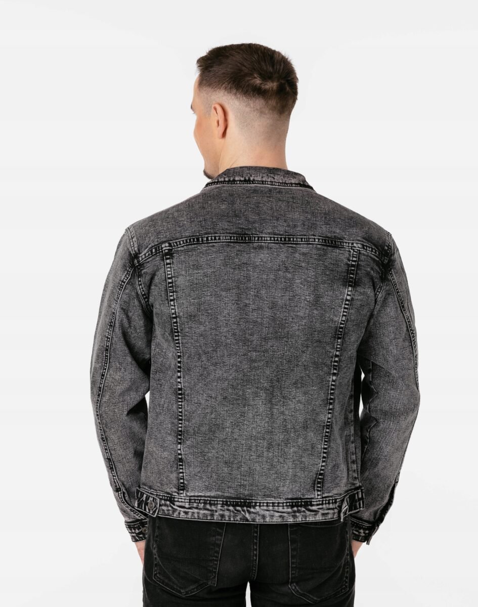 Męska kurtka jeansowa o ponadczasowym, klasycznym kroju uszyta z jeansu w kolorze czarnym "Super Black" z fabrycznym efektem znoszonego, zniszczonego jeansu "used-look", w procesie produkcji poddana została specjalnym zabiegom postarzającym materiał polegającym to na wycieraniu, wielokrotnym wypieraniu barwnika i tworzeniu efektownych rozjaśnień i przetarć. Efektowne rozjaśnienia i wytarcia mają na celu wywołanie tak modnego efektu starej, długo noszonej, zużytej kurtki. Zapinana w całości na rząd guzików. Z przodu na piersi dwie naszywane kieszenie, kryte patkami i zapinane na metalowe guziki. Na bokach dwie wpuszczane kieszenie na dłonie a od wewnętrznej strony dwie duże kieszenie naszywane. Rękawy zakończone mankietami zapinanymi na guziki. Z tyłu na wysokości bioder regulacja szerokości i dopasowania. Nie krępuje ruchów i jest bardzo wygodna w noszeniu. Zaprojektowana została specjalnie dla wygody i długiego użytkowania z zachowaniem najwyższej jakości. Najbardziej podatne na uszkodzenia miejsca wzmocnione są dodatkowymi przeszyciami. Solidnie wykonana, niezwykle wytrzymała i odporna na rozdarcia, będzie Ci służyła przez wiele lat. Doskonała propozycja na okres wiosenny i jesienny oraz na chłodne letnie wieczory.