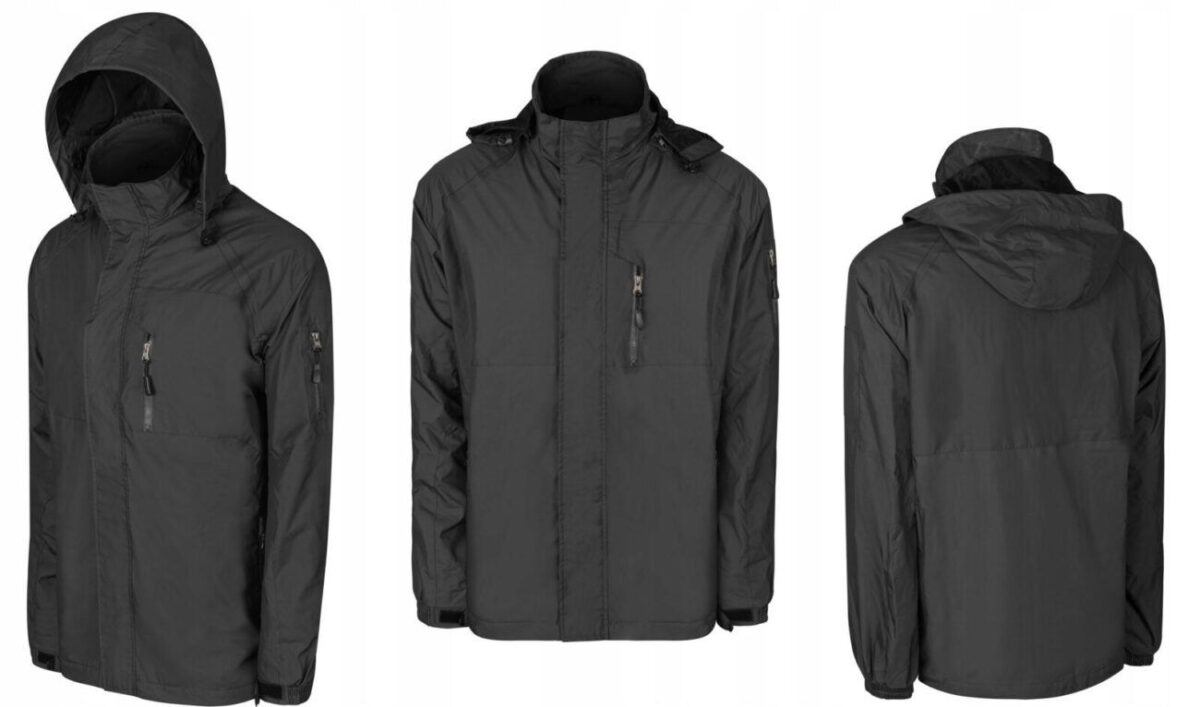 Kurtka jest wiatroszczelna, wodoodporna (20000 MVP MM), lekko ocieplona i zapinana w całości na kryty plisą zamek błyskawiczny. Skutecznie zabezpiecza użytkownika przed deszczem, wiatrem i chłodem jest wyjątkowo mocna a także odporna na działanie czynników atmosferycznych. Odpinany na zamek błyskawiczny i regulowany ściągaczem oraz stopperami kaptur osłoni Twoją głowę przed deszczem, wiatrem i chłodem. Wysoki kołnierz/stójka skutecznie chroni podbródek i szyję a często zastępuje nawet szalik co jest bardzo wygodne. Kurtka posiada dwie kieszenie przednie na dłonie zasuwane na zamki błyskawiczne oraz kieszeń na klatce piersiowej zasuwaną również na zamek. Na lewym rękawie kieszonka zasuwana na ozdobny suwak. Wewnątrz kurtki kieszeń na portfel, dokumenty, telefon komórkowy itp. zapinana na rzepa. Ściągacze regulacyjne na dole kurtki oraz przy kapturze z gumką i stoperem a w rękawach regulowane dodatkowo na rzepy pozwalają na precyzyjne dopasowanie kurtki do ciała co znacznie zapobiega utracie ciepła i skutecznie chroni przed podmuchami wiatru. Wewnętrzna strona kurtki wykończona jest materiałową pikowaną w romby podszewką.