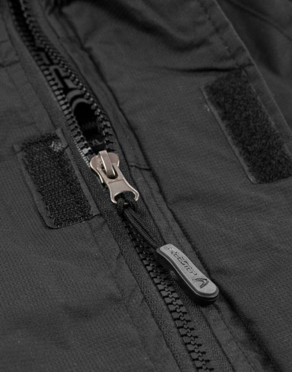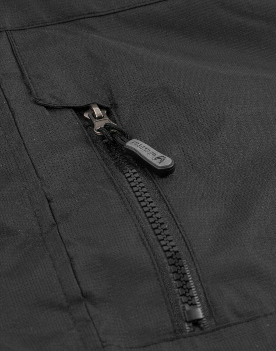 • Kieszenie: 2 wpuszczane kieszenie na dłonie zasuwane na zamki, kieszeń na lewej piersi zasuwana na zamek, na lewym przedramieniu kieszeń zasuwana na zamek, wewnętrzna kieszeń na portfel, dokumenty, telefon komórkowy MP3 itp. zapinana na rzepa