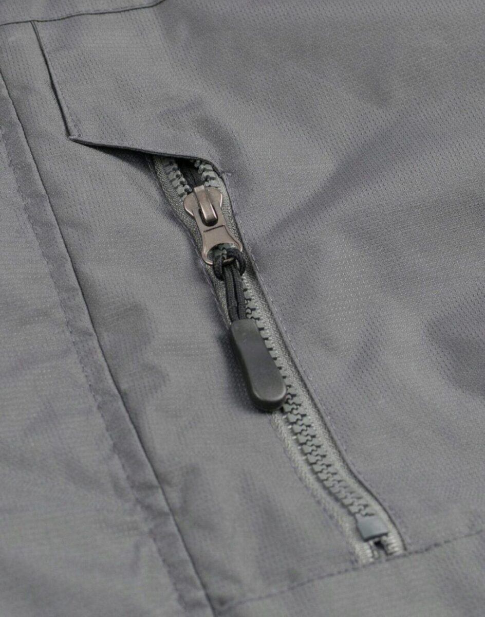 - Kieszenie: 2 wpuszczane kieszenie na dłonie zasuwane na zamki, kieszeń na lewej piersi zasuwana na zamek, na lewym przedramieniu kieszeń zasuwana na zamek, wewnętrzna kieszeń na portfel, dokumenty, telefon komórkowy MP3 itp. zapinana na rzepa