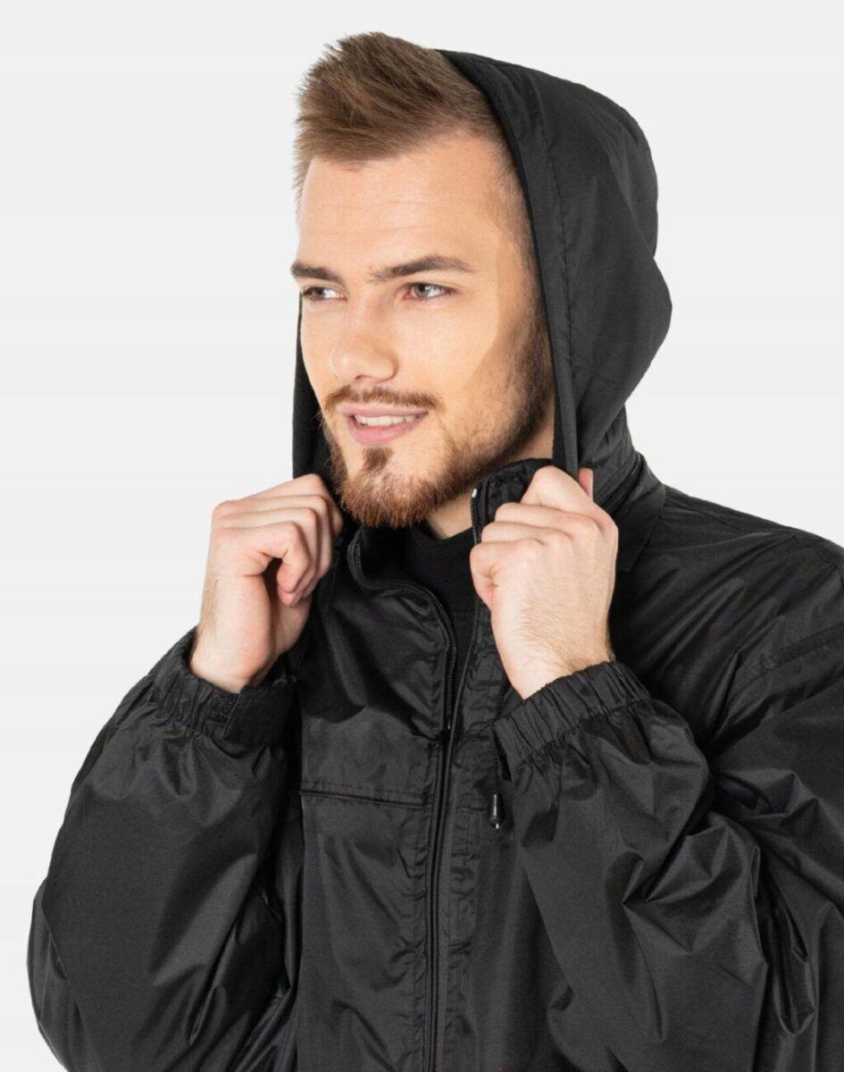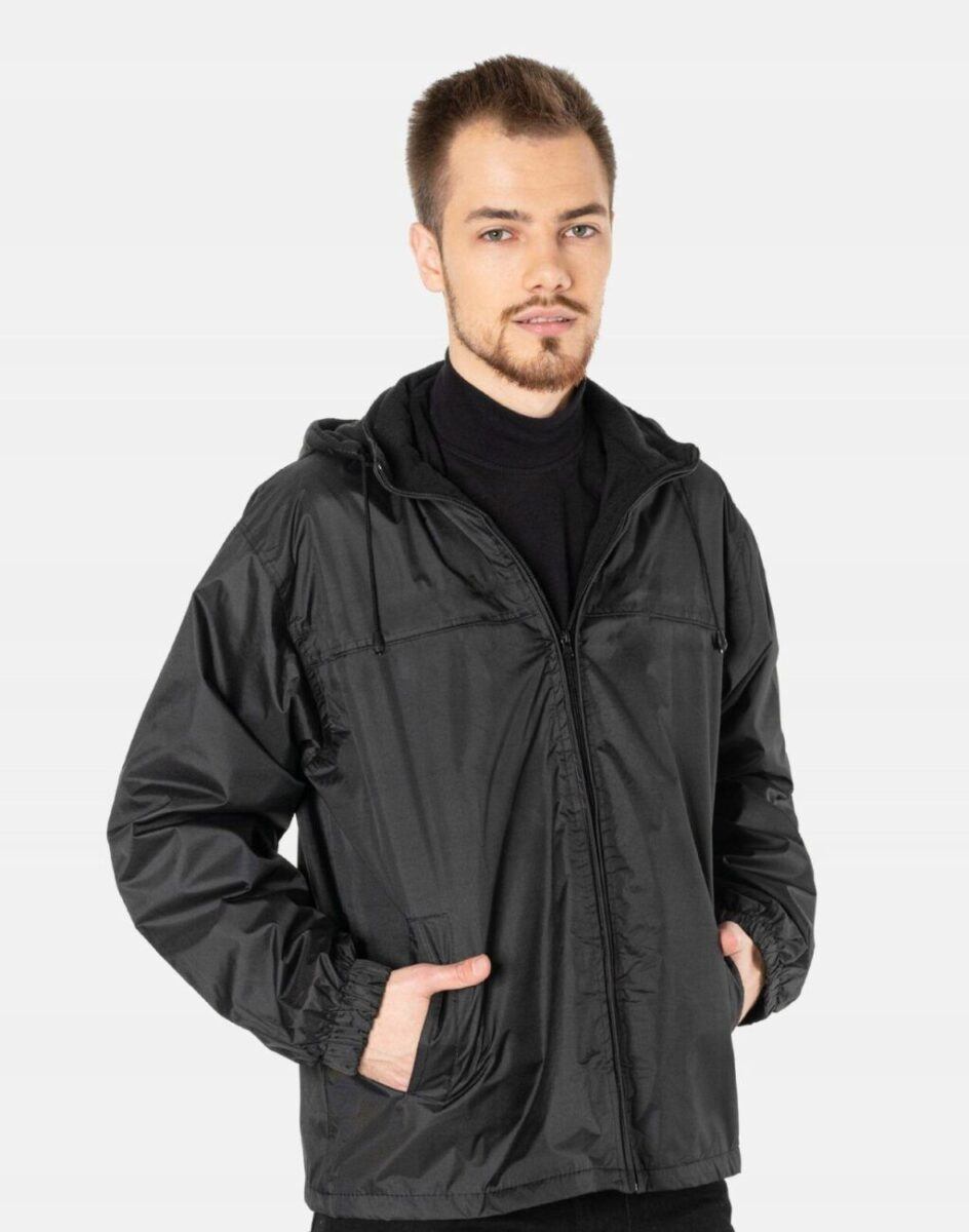 Przejściowa lekka kurtka męska na polarowej podszewce z odpinanym kapturem
