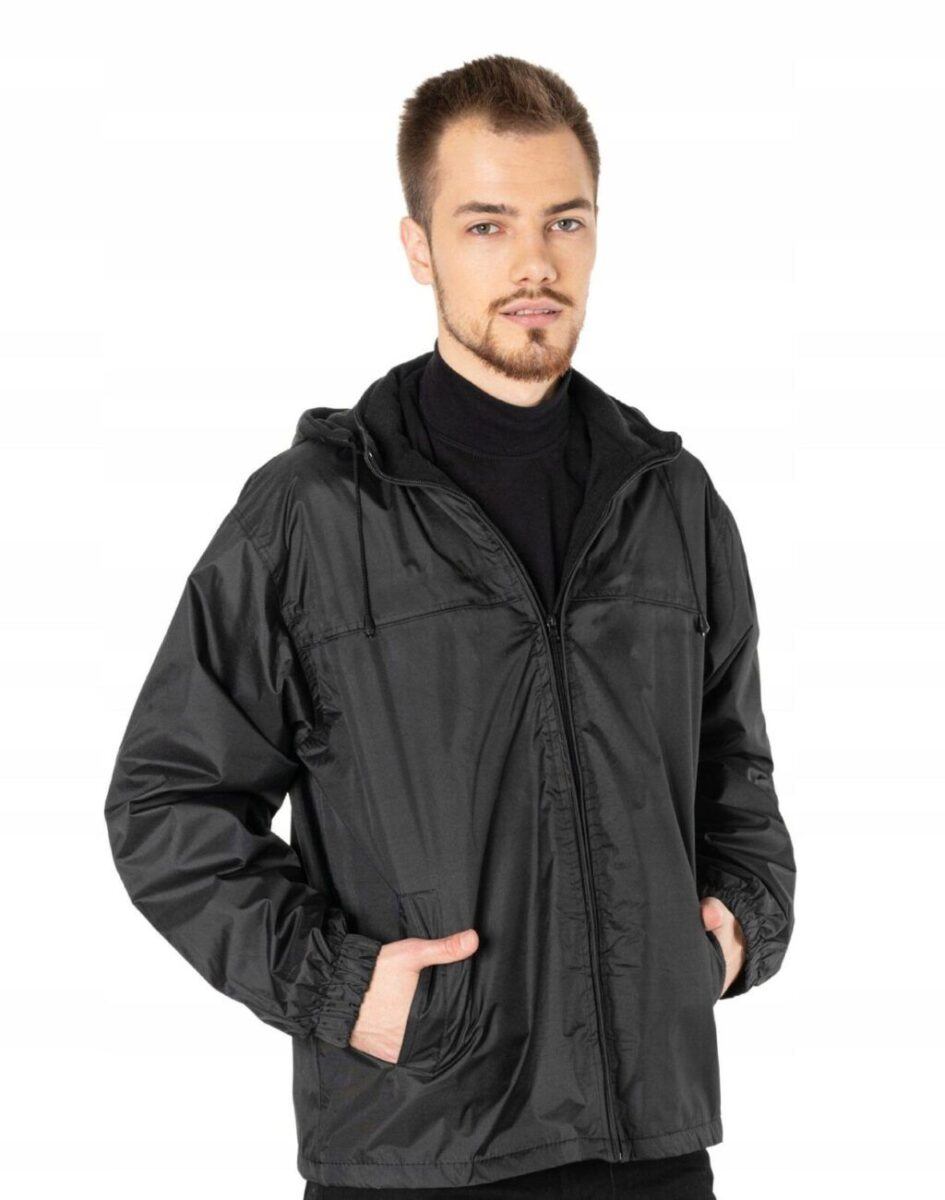 Przejściowa lekka kurtka męska na polarowej podszewce z odpinanym kapturem