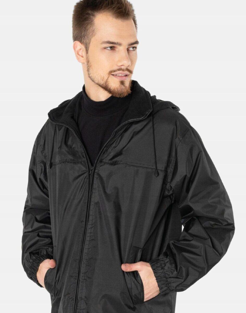 Lato, wiosna czy jesień to pory, kiedy królują wygodne, przejściowe kurtki męskie. To niezawodne, lekkie okrycie wierzchnie, na chłodny dzień lub wietrzny poranek. Kurtka jest wiatroszczelna, wodoodporna i zapinana w całości na zamek błyskawiczny wraz z wysokim kołnierzem/stójką. Posiada dwie wpuszczane kieszenie na dłonie oraz wewnętrzną kieszeń na portfel, dokumenty, telefon komórkowy MP3 itp. Odpinany na zamek lekko ocieplony polarem kaptur osłoni Twoją głowę przed deszczem, wiatrem i chłodem. Wysoki kołnierz/stójka skutecznie chroni podbródek i szyję a często zastępuje nawet szalik co jest bardzo wygodne. Ściągacze regulacyjne przy kapturze i elastyczne mankiety w rękawach pozwalają na precyzyjne dopasowanie kurtki do ciała co znacznie zapobiega utracie ciepła i skutecznie chroni przed podmuchami wiatru. Materiał na zewnątrz posiada wykończenie typu Water Repellency, który zapobiega nasączeniu warstwy zewnętrznej wodą. Wewnętrzna strona kurtki wykończona jest miękką, ciepłą i przyjazną dla ciała polarową podszewką.