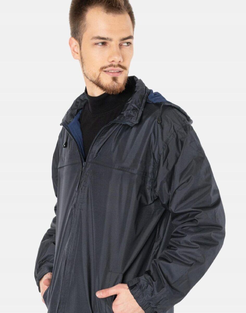 Lato, wiosna czy jesień to pory, kiedy królują wygodne, przejściowe kurtki męskie. To niezawodne, lekkie okrycie wierzchnie, na chłodny dzień lub wietrzny poranek. Kurtka jest wiatroszczelna, wodoodporna i zapinana w całości na zamek błyskawiczny wraz z wysokim kołnierzem/stójką. Posiada dwie wpuszczane kieszenie na dłonie oraz wewnętrzną kieszeń na portfel, dokumenty, telefon komórkowy MP3 itp. Odpinany na zamek lekko ocieplony polarem kaptur osłoni Twoją głowę przed deszczem, wiatrem i chłodem. Wysoki kołnierz/stójka skutecznie chroni podbródek i szyję a często zastępuje nawet szalik co jest bardzo wygodne. Ściągacze regulacyjne przy kapturze i elastyczne mankiety w rękawach pozwalają na precyzyjne dopasowanie kurtki do ciała co znacznie zapobiega utracie ciepła i skutecznie chroni przed podmuchami wiatru. Materiał na zewnątrz posiada wykończenie typu Water Repellency, który zapobiega nasączeniu warstwy zewnętrznej wodą. Wewnętrzna strona kurtki wykończona jest miękką, ciepłą i przyjazną dla ciała polarową podszewką.