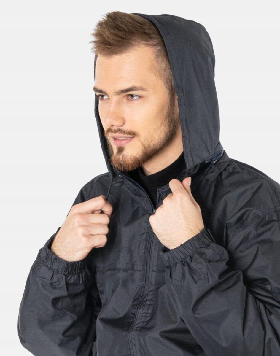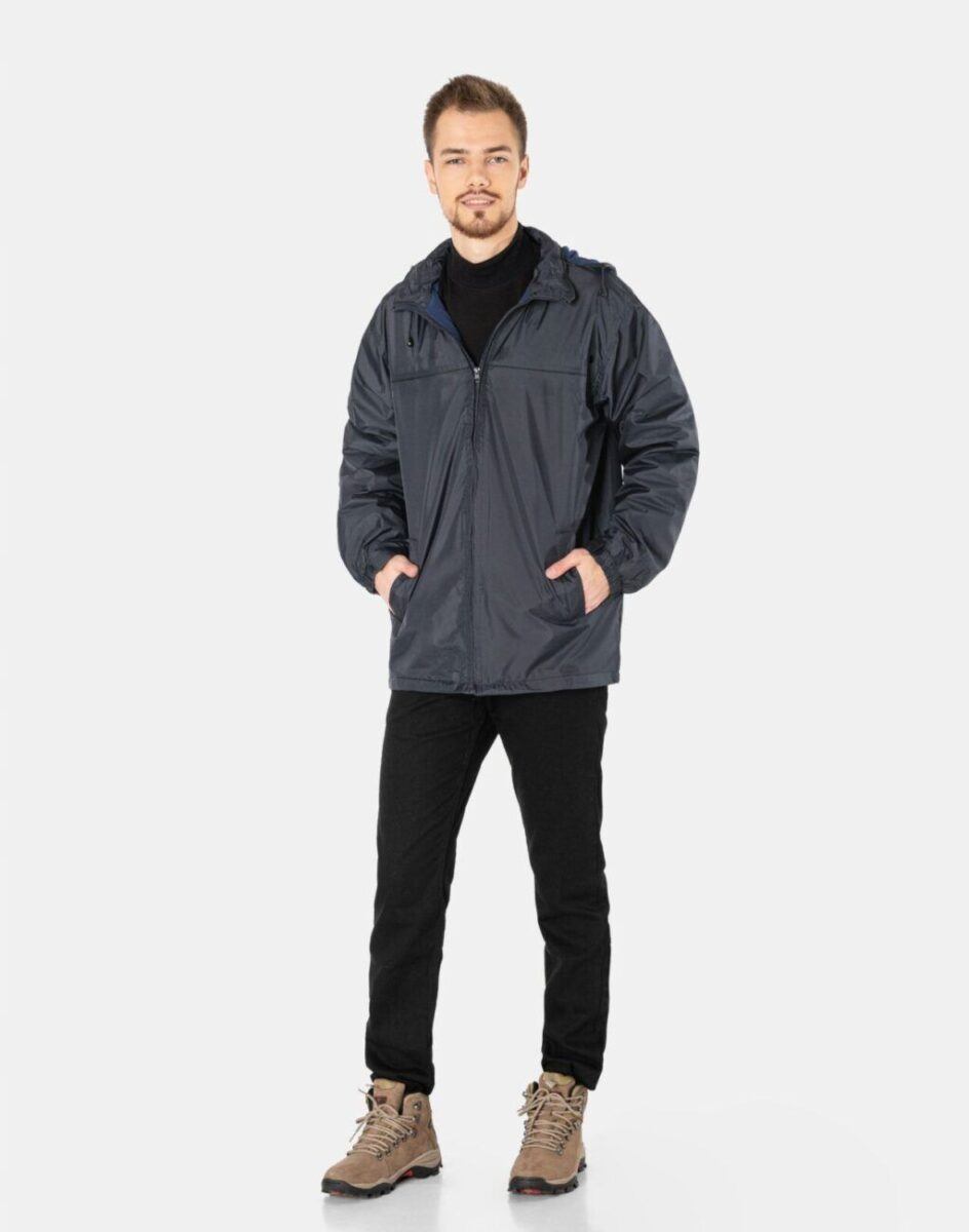 Lato, wiosna czy jesień to pory, kiedy królują wygodne, przejściowe kurtki męskie. To niezawodne, lekkie okrycie wierzchnie, na chłodny dzień lub wietrzny poranek. Kurtka jest wiatroszczelna, wodoodporna i zapinana w całości na zamek błyskawiczny wraz z wysokim kołnierzem/stójką. Posiada dwie wpuszczane kieszenie na dłonie oraz wewnętrzną kieszeń na portfel, dokumenty, telefon komórkowy MP3 itp. Odpinany na zamek lekko ocieplony polarem kaptur osłoni Twoją głowę przed deszczem, wiatrem i chłodem. Wysoki kołnierz/stójka skutecznie chroni podbródek i szyję a często zastępuje nawet szalik co jest bardzo wygodne. Ściągacze regulacyjne przy kapturze i elastyczne mankiety w rękawach pozwalają na precyzyjne dopasowanie kurtki do ciała co znacznie zapobiega utracie ciepła i skutecznie chroni przed podmuchami wiatru. Materiał na zewnątrz posiada wykończenie typu Water Repellency, który zapobiega nasączeniu warstwy zewnętrznej wodą. Wewnętrzna strona kurtki wykończona jest miękką, ciepłą i przyjazną dla ciała polarową podszewką.