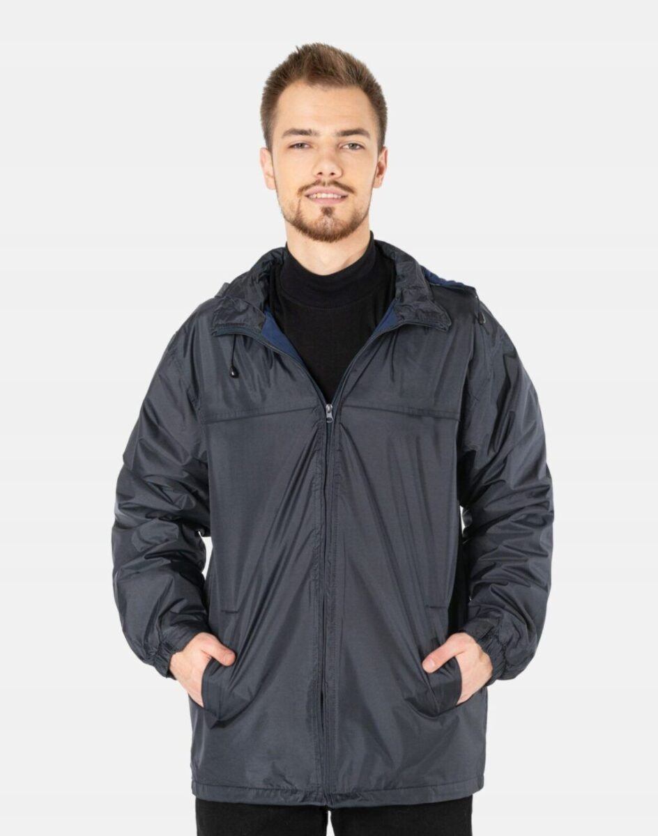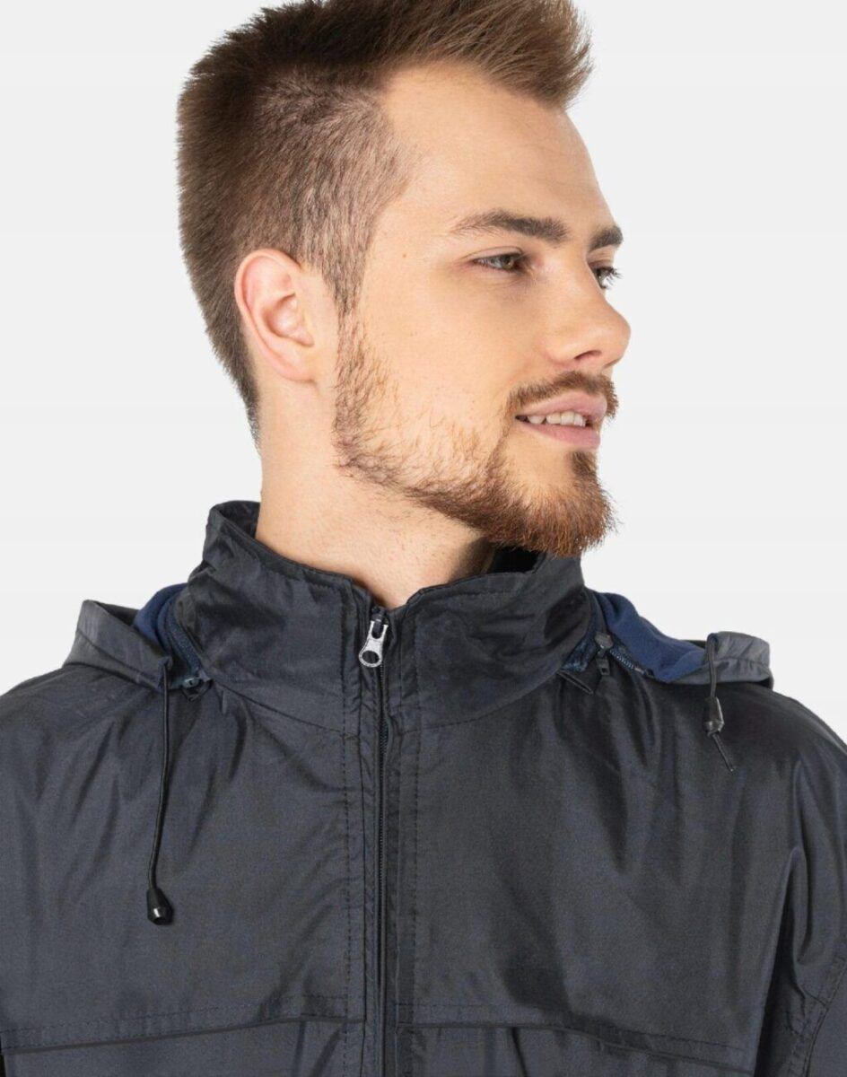 Przejściowa lekka kurtka męska na polarowej podszewce z odpinanym kapturem