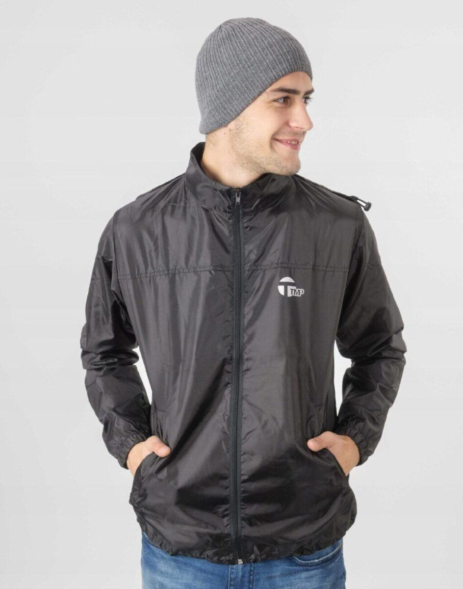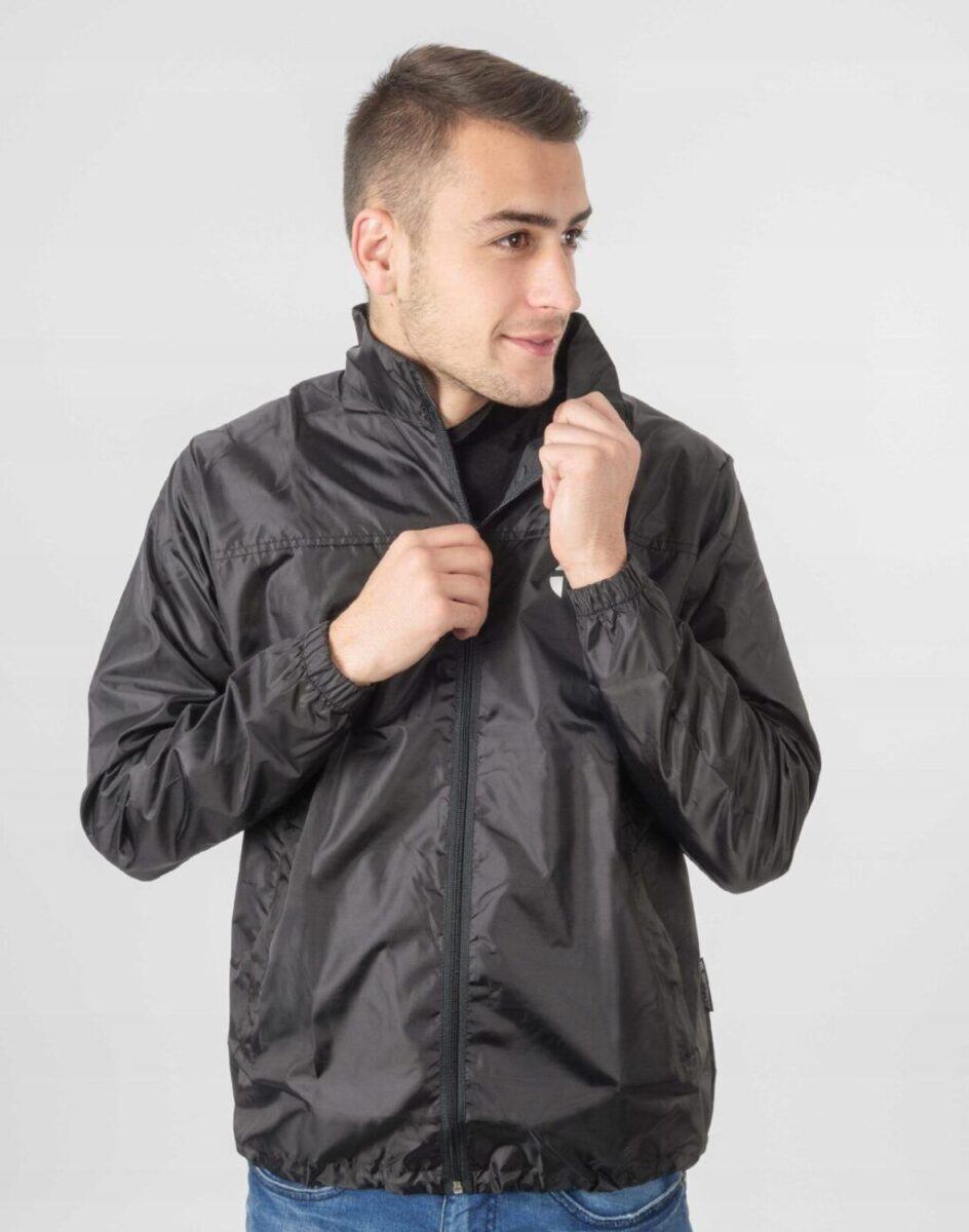 Kurtka przejściowa męska wykonana z gęstej tkaniny poliestrowej charakteryzującej się wiatroszczelnością i wodoodpornością zachowując przy tym bardzo dużą wytrzymałość oraz niezwykłą odporność na plamy. Kurtka zasuwana jest w całości na na zamek błyskawiczny. Wysoki kołnierz/stójka zasłania szyję i chroni gardło a często zastępuje nawet szalik co jest bardzo wygodne. Praktyczny, chowany w kołnierzu kaptur skutecznie osłania głowę przed deszczem i wiatrem. Z przodu kurtki dwie duże wpuszczane kieszenie na dłonie zasuwane na kryte zamki błyskawiczne. Szerokość dołu kurtki regulowana jest ściągaczem ze stoperem natomiast rękawy zakończone są elastycznym mankietem co pozwala na precyzyjne dopasowanie kurtki do ciała, zapobiega utracie ciepła i skutecznie chroni przed podmuchami wiatru. Kurtka posiada element odblaskowy poprawiający bezpieczeństwo użytkownika po zmroku. Materiał zewnętrzny jest wiatroszczelny i posiada właściwości odpychające wodę. Wygodna, praktyczna i lekka, idealna na wiosnę/jesień. Będzie Cię chronić w chłodny dzień lub wietrzny poranek.