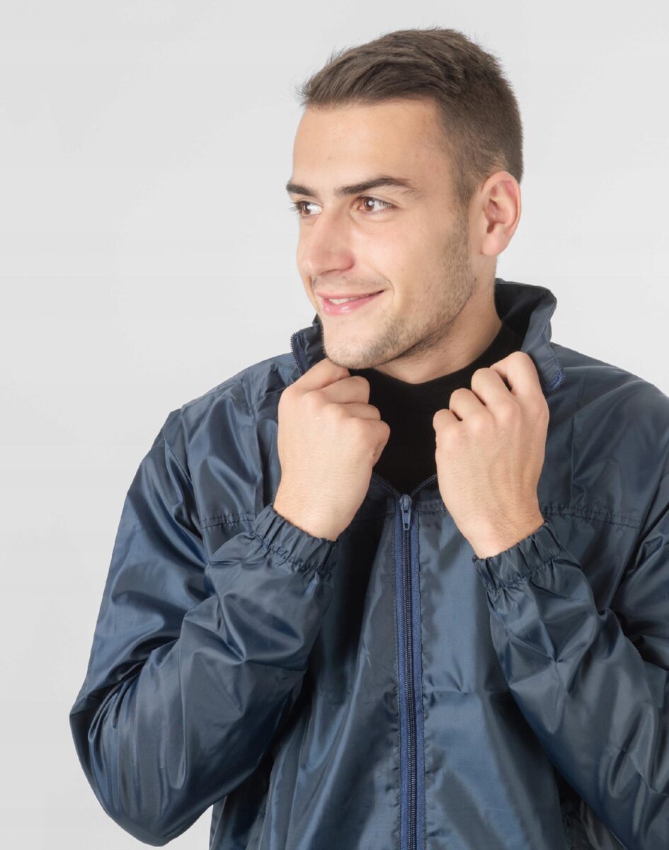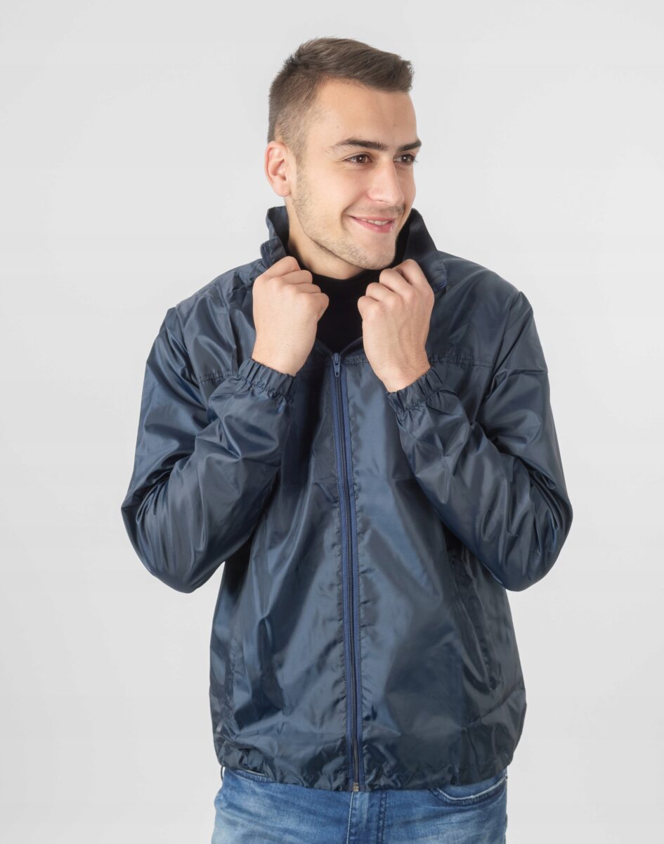 Kurtka przejściowa męska wykonana z gęstej tkaniny poliestrowej charakteryzującej się wiatroszczelnością i wodoodpornością zachowując przy tym bardzo dużą wytrzymałość oraz niezwykłą odporność na plamy. Kurtka zasuwana jest w całości na na zamek błyskawiczny. Wysoki kołnierz/stójka zasłania szyję i chroni gardło a często zastępuje nawet szalik co jest bardzo wygodne. Praktyczny, chowany w kołnierzu kaptur skutecznie osłania głowę przed deszczem i wiatrem. Z przodu kurtki dwie duże wpuszczane kieszenie na dłonie zasuwane na kryte zamki błyskawiczne. Szerokość dołu kurtki regulowana jest ściągaczem ze stoperem natomiast rękawy zakończone są elastycznym mankietem co pozwala na precyzyjne dopasowanie kurtki do ciała, zapobiega utracie ciepła i skutecznie chroni przed podmuchami wiatru. Kurtka posiada element odblaskowy poprawiający bezpieczeństwo użytkownika po zmroku. Materiał zewnętrzny jest wiatroszczelny i posiada właściwości odpychające wodę. Wygodna, praktyczna i lekka, idealna na wiosnę/jesień. Będzie Cię chronić w chłodny dzień lub wietrzny poranek.