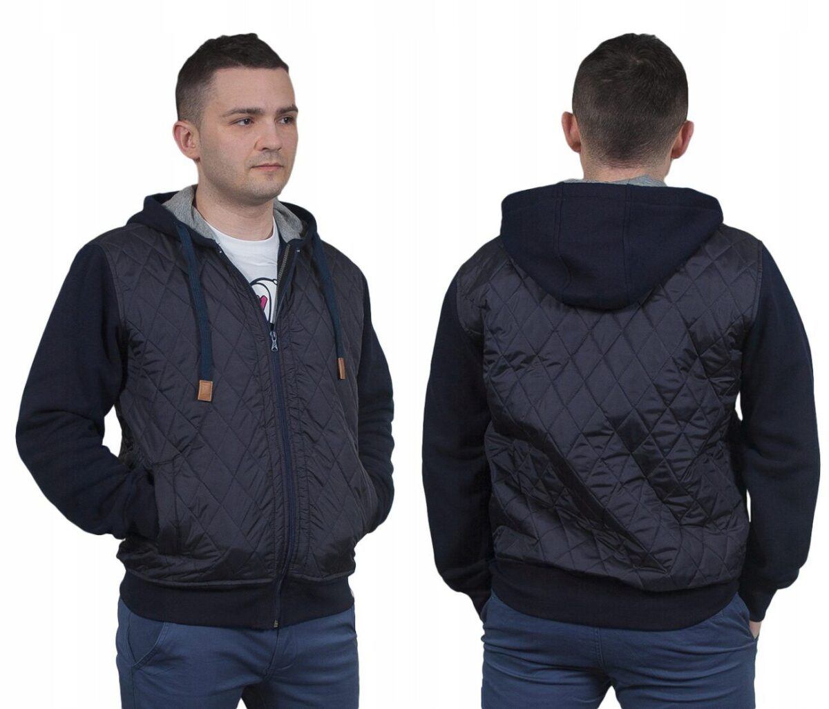 Kurtka przejściowa męska pikowana z kapturem