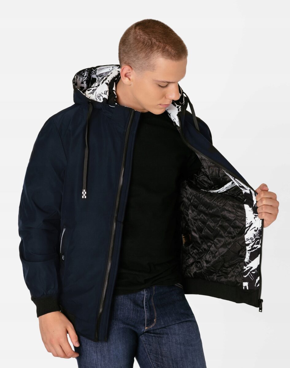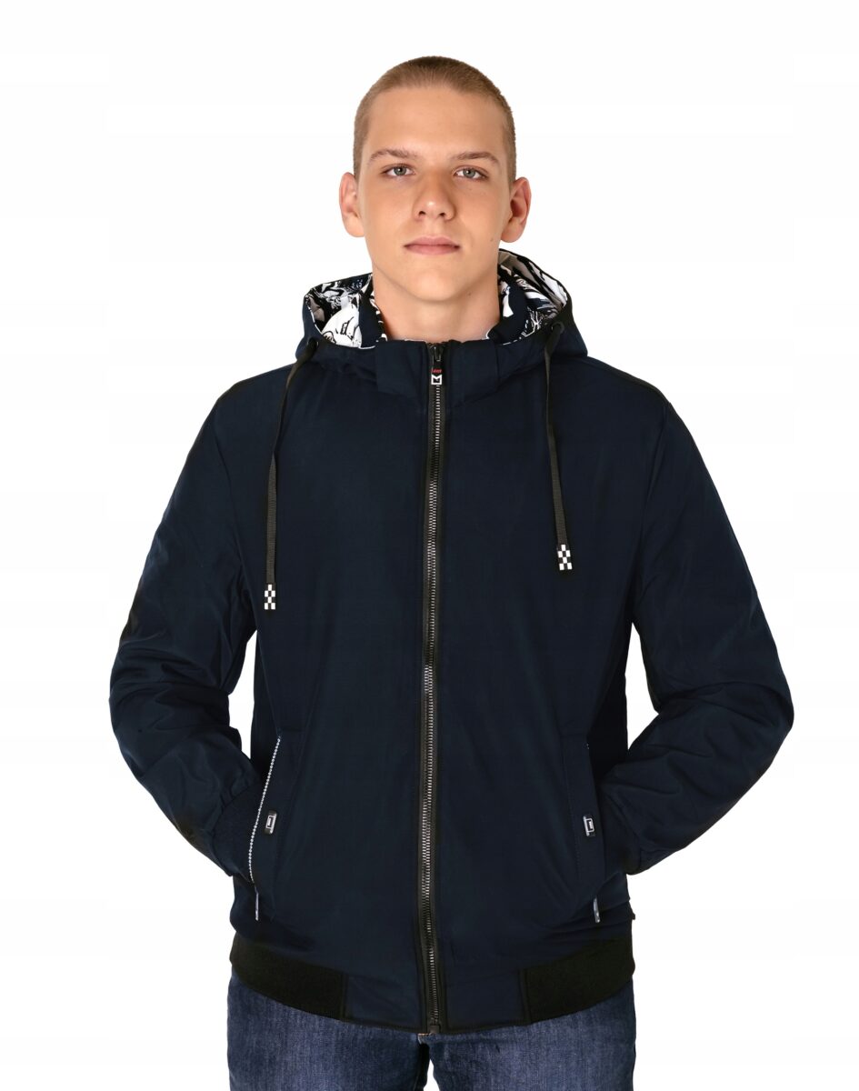 Lekko ocieplona puchem syntetycznym kurtka męska z odpinanym kapturem to doskonałe i ponadczasowe okrycie wierzchnie na sezon przejściowy a nawet zimowy. Kurtka zasuwana jest w całości na firmowy zamek błyskawiczny wraz z wysokim kołnierzem-stójką. Na bokach kurtki dwie kieszenie na dłonie zasuwane na zamki błyskawiczne a od wewnętrznej strony dwie duże wpuszczane kieszenie na portfel, dokumenty, telefon kom. itp. z czego jedna zasuwana na suwak. Praktyczny, lekko ocieplany, odpinany na zamek błyskawiczny kaptur posiada możliwość połączenia go za pomocą rzep z kołnierzem oraz regulacji jego wielkości i dopasowania taśmą ściągającą co skutecznie osłania głowę przed deszczem, wiatrem i chłodem. Wysoki, ocieplony kołnierz/stójka chroni podbródek i szyję a często zastępuje nawet szalik co jest bardzo wygodne. Materiał zewnętrzny jest wiatroszczelny i posiada wykończenie typu Water Repellency, które zapobiega nasączeniu warstwy zewnętrznej wodą. Wewnętrzna strona kurtki wykończona jest materiałową pikowaną i ocieplaną podszewką. Długość do bioder, która trzyma ciepło i przytulność przy zmiennej pogodzie. Nie krępuje ruchów i z powodzeniem zakrywa części ciała wrażliwe na chłód jak plecy na wysokości nerek. Szerokie elastyczne ściągacze u dołu kurtki i przy rękawach pozwalają na precyzyjne dopasowanie do ciała, zapobiegają utracie ciepła i skutecznie chronią przed podmuchami wiatru.