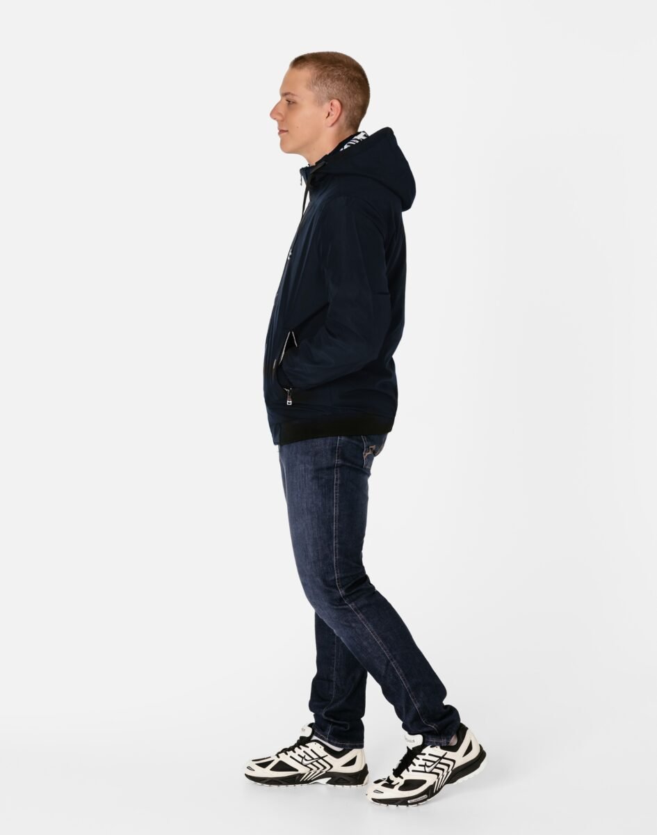 - Dwie wpuszczane kieszenie na dłonie zasuwane na zamki błyskawiczne, dwie wewnętrzne kieszenie na telefon, portfel itp.