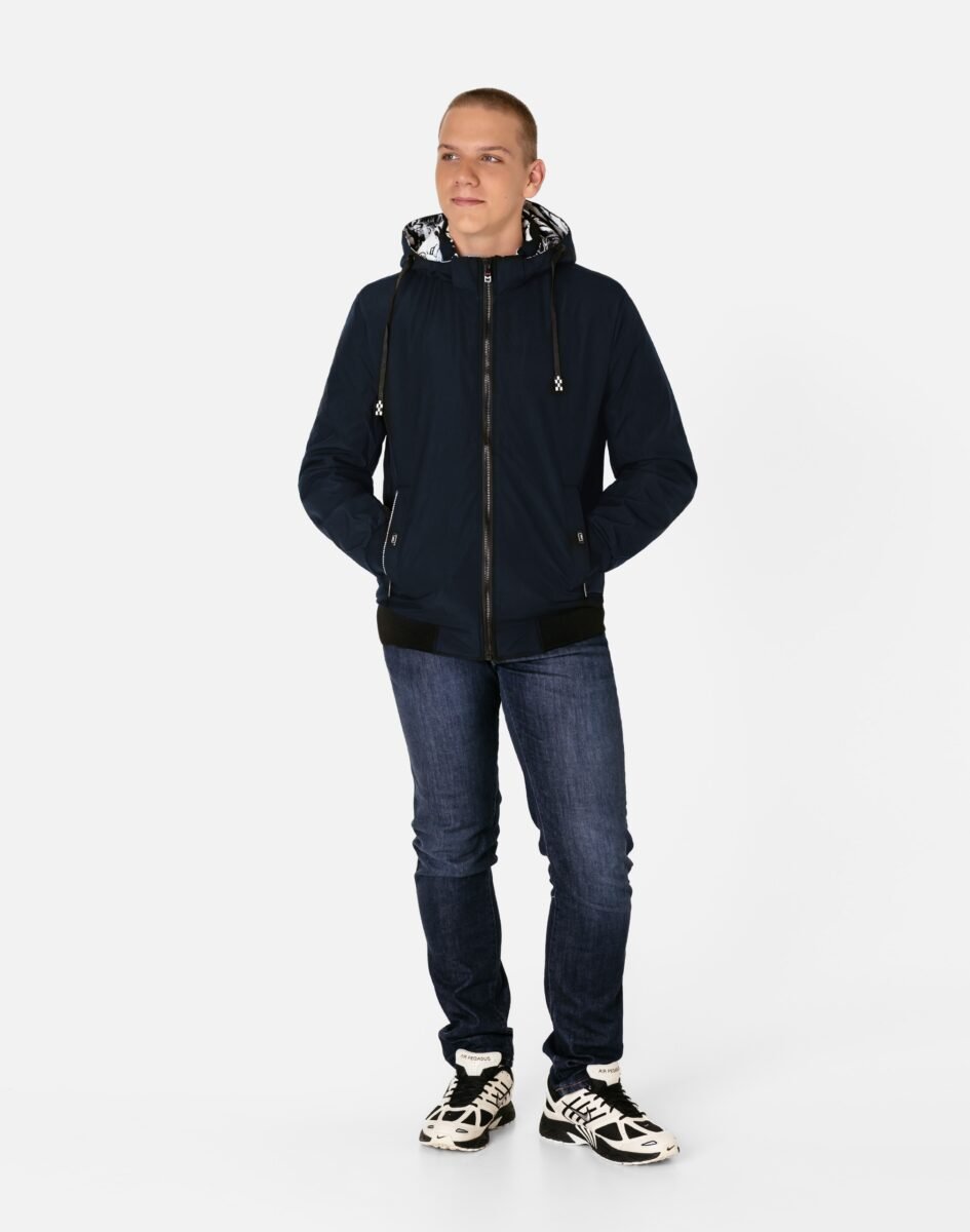 Kurtka Przejściowa Męska Lekko Ocieplona z Kapturem