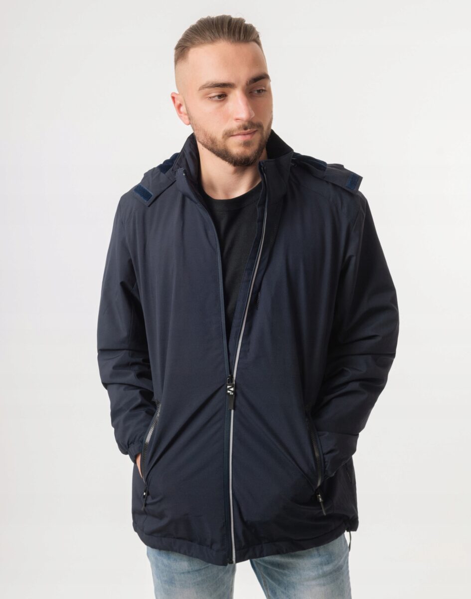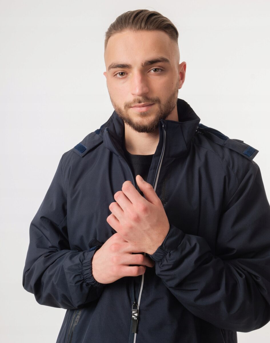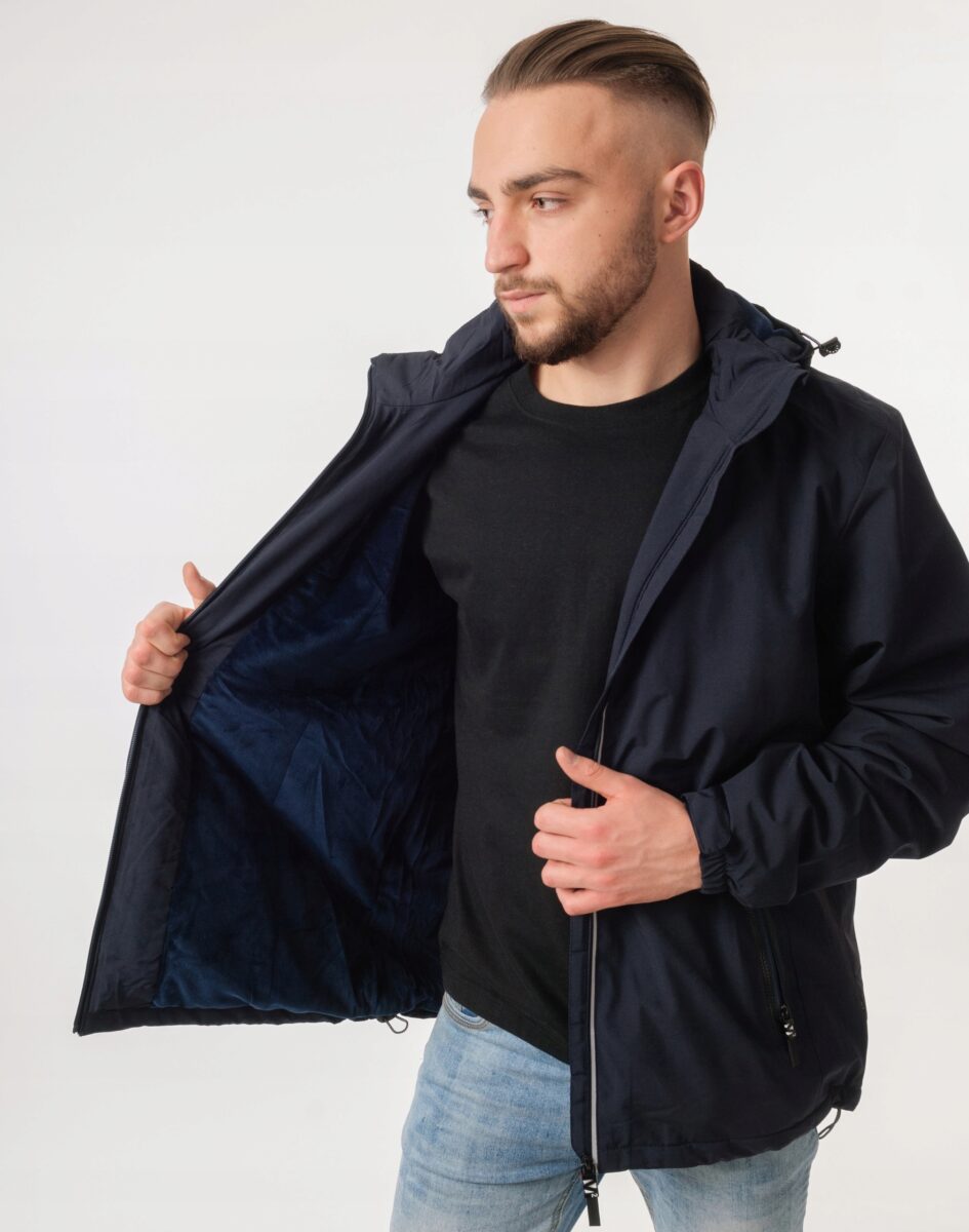 Lekko ocieplana kurtka męska firmy TEMSTER przekonująca wygodnym sportowym fasonem oraz praktycznym ocieplonym welurową podszewką kapturem. Zasuwana jest w całości na wodoodporny zamek błyskawiczny. Z przodu kurtki dwie wpuszczane kieszenie na dłonie zasuwane na wodoodporne zamki błyskawiczne. Wewnątrz kurtki kieszeń naszywana idealna na portfel, telefon kom. dokumenty itp. Odpinany na zamek ocieplony kaptur (z możliwością połączenia go za pomocą rzepów z kołnierzem) osłoni Twoją szyję i głowę przed deszczem, wiatrem i chłodem. Wysoki kołnierz/stójka skutecznie chroni podbródek i szyję a często zastępuje nawet szalik co jest bardzo wygodne. Ściągacze regulacyjne na dole kurtki oraz przy kapturze z gumką i stoperem, a w rękawach regulowane dodatkowo na rzepy pozwalają na precyzyjne dopasowanie kurtki do ciała co znacznie zapobiega utracie ciepła i skutecznie chroni przed podmuchami wiatru. Materiał na zewnątrz posiada wykończenie typu Water Repellency które zapobiega nasączeniu warstwy zewnętrznej wodą. Wewnętrzna strona kurtki wykończona miękką, ciepłą i przyjazną dla ciała welurową podszewką.