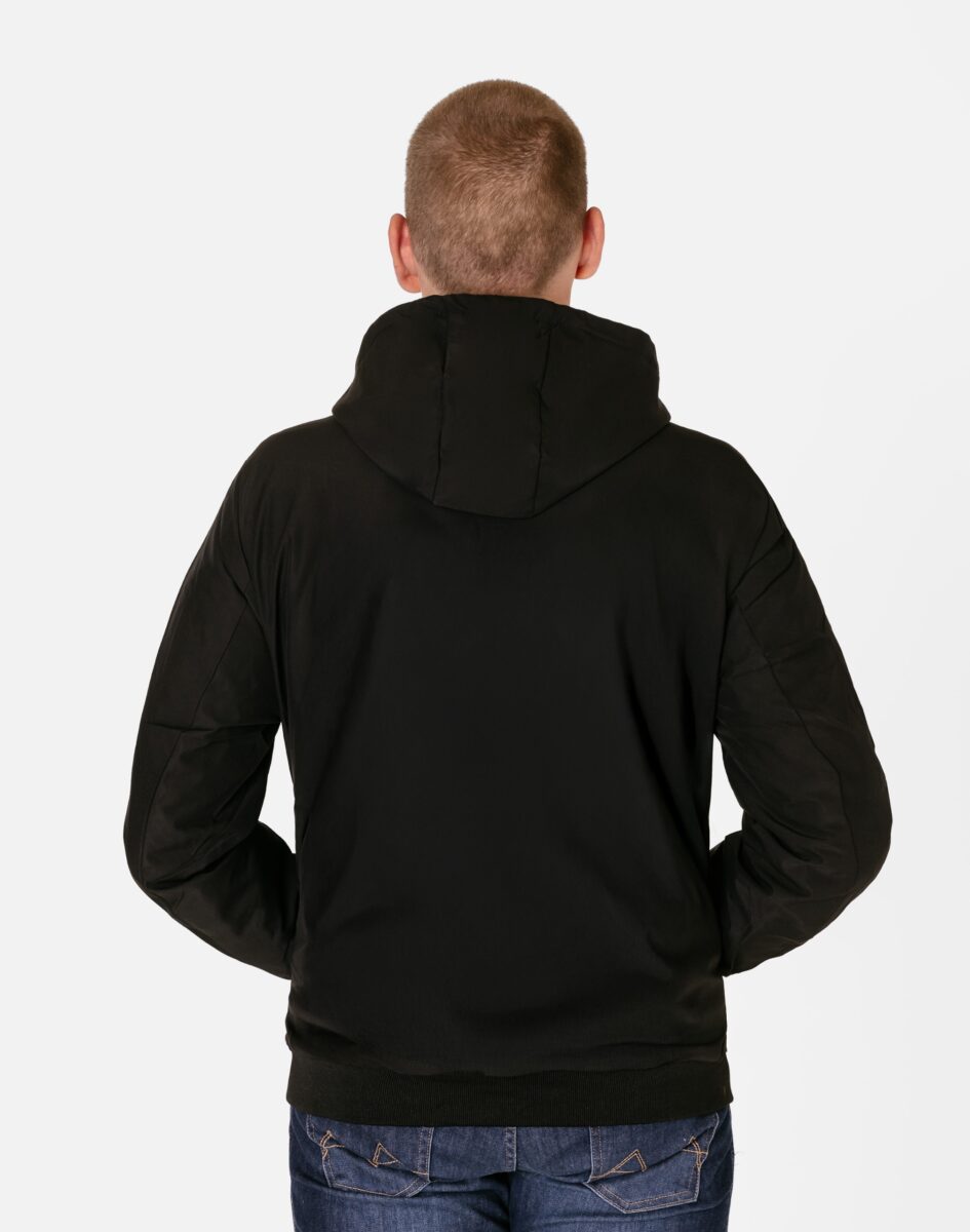 Lekko ocieplona puchem syntetycznym kurtka męska z odpinanym kapturem to doskonałe i ponadczasowe okrycie wierzchnie na sezon przejściowy a nawet zimowy. Kurtka zasuwana jest w całości na firmowy zamek błyskawiczny wraz z wysokim kołnierzem-stójką. Na bokach kurtki dwie kieszenie na dłonie zasuwane na zamki błyskawiczne a od wewnętrznej strony dwie duże wpuszczane kieszenie na portfel, dokumenty, telefon kom. itp. z czego jedna zasuwana na suwak. Praktyczny, lekko ocieplany, odpinany na zamek błyskawiczny kaptur posiada możliwość połączenia go za pomocą rzep z kołnierzem oraz regulacji jego wielkości i dopasowania taśmą ściągającą co skutecznie osłania głowę przed deszczem, wiatrem i chłodem. Wysoki, ocieplony kołnierz/stójka chroni podbródek i szyję a często zastępuje nawet szalik co jest bardzo wygodne. Materiał zewnętrzny jest wiatroszczelny i posiada wykończenie typu Water Repellency, które zapobiega nasączeniu warstwy zewnętrznej wodą. Wewnętrzna strona kurtki wykończona jest materiałową pikowaną i ocieplaną podszewką. Długość do bioder, która trzyma ciepło i przytulność przy zmiennej pogodzie. Nie krępuje ruchów i z powodzeniem zakrywa części ciała wrażliwe na chłód jak plecy na wysokości nerek. Szerokie elastyczne ściągacze u dołu kurtki i przy rękawach pozwalają na precyzyjne dopasowanie do ciała, zapobiegają utracie ciepła i skutecznie chronią przed podmuchami wiatru.