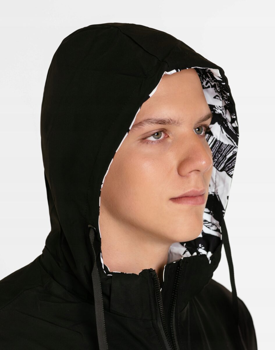 - Kaptur: lekko ocieplony, odpinany na zamek, regulowany taśmą ściągającą z możliwością połączenia go za pomocą rzep z kołnierzem