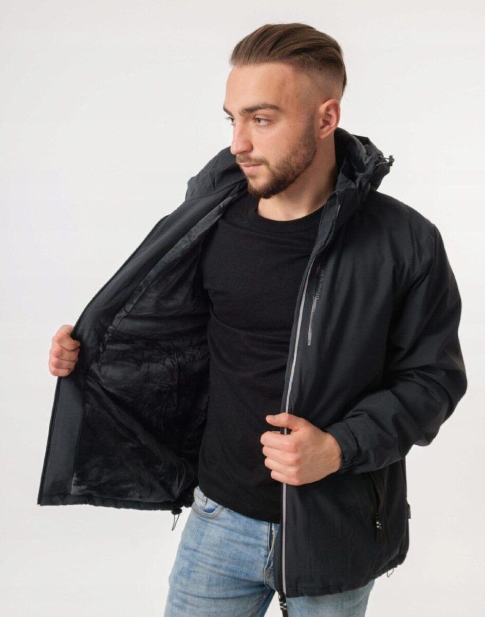 Lekko ocieplana kurtka męska firmy TEMSTER przekonująca wygodnym sportowym fasonem oraz praktycznym ocieplonym welurową podszewką kapturem. Zasuwana jest w całości na wodoodporny zamek błyskawiczny. Z przodu kurtki dwie wpuszczane kieszenie na dłonie zasuwane na wodoodporne zamki błyskawiczne. Wewnątrz kurtki kieszeń naszywana idealna na portfel, telefon kom. dokumenty itp. Odpinany na zamek ocieplony kaptur (z możliwością połączenia go za pomocą rzepów z kołnierzem) osłoni Twoją szyję i głowę przed deszczem, wiatrem i chłodem. Wysoki kołnierz/stójka skutecznie chroni podbródek i szyję a często zastępuje nawet szalik co jest bardzo wygodne. Ściągacze regulacyjne na dole kurtki oraz przy kapturze z gumką i stoperem, a w rękawach regulowane dodatkowo na rzepy pozwalają na precyzyjne dopasowanie kurtki do ciała co znacznie zapobiega utracie ciepła i skutecznie chroni przed podmuchami wiatru. Materiał na zewnątrz posiada wykończenie typu Water Repellency które zapobiega nasączeniu warstwy zewnętrznej wodą. Wewnętrzna strona kurtki wykończona miękką, ciepłą i przyjazną dla ciała welurową podszewką.