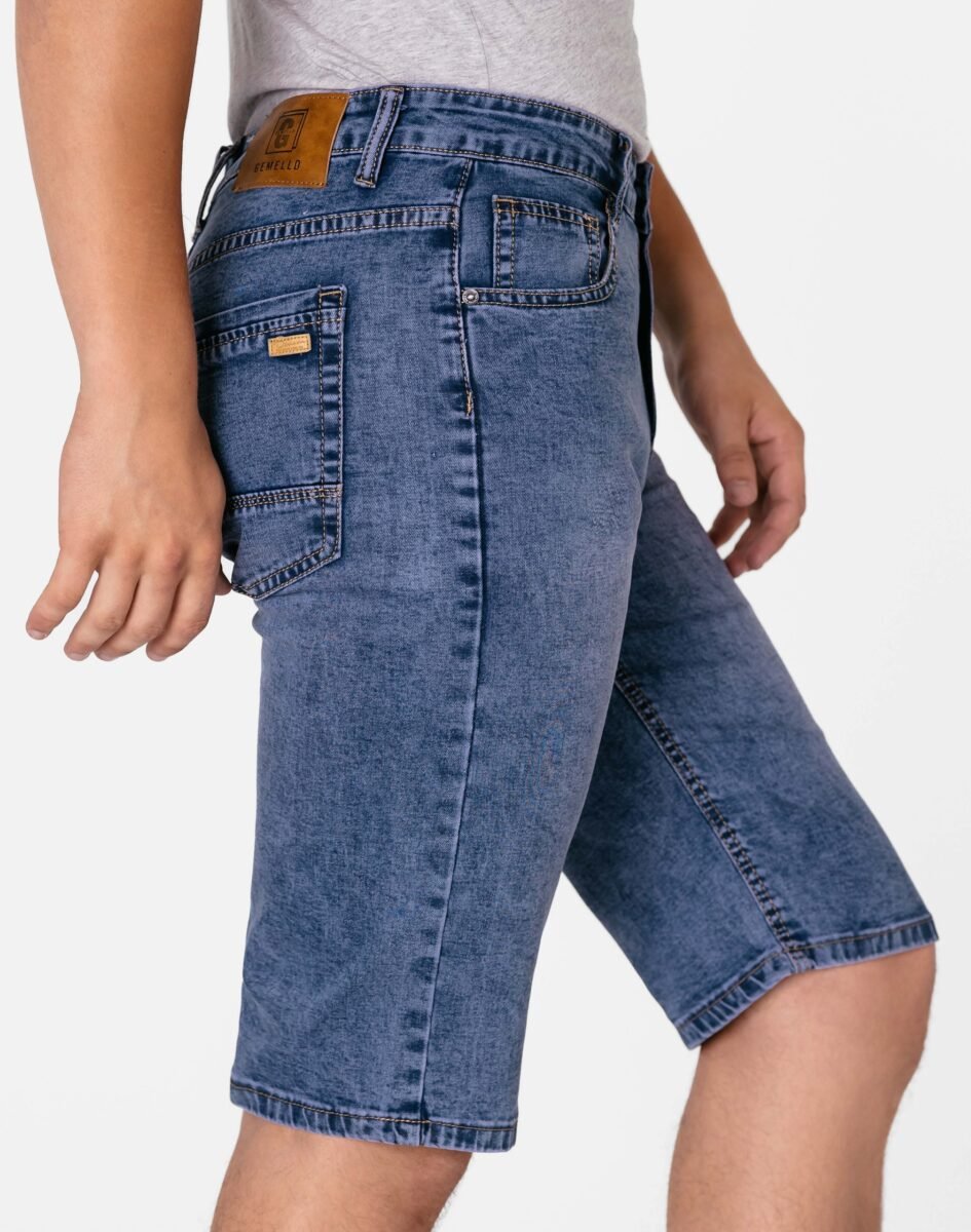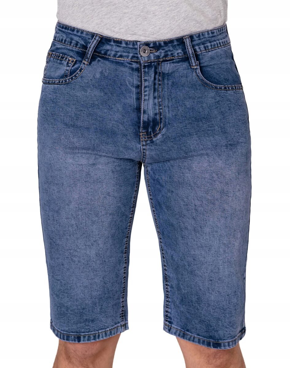 Krótkie bermudy jeansowe z modnym efektem sprania w stylu "used-look" to wygodne rozwiązanie na ciepłe, gorące dni i niezbędny element wakacyjnej garderoby dla mężczyzn z charakterem, który doskonale sprawdzi się podczas czasu wolnego. Cienkie i wygodne o sprawdzonym przez wielu naszych zadowolonych klientów kroju, idealne na co dzień jako element casualowego stroju, czyniąc go lekkim i dostosowanym do wysokich temperatur. Wygodny, luźny krój spodenek nie ogranicza swobody ruchów, a odpowiednia na wysokie temperatury niewielka gramatura tkaniny (260 g/m2) pozytywnie wpływa na komfort użytkowania. Wykonane według najnowszych modowych trendów przewidzianych na ten sezon zwracający na siebie uwagę modną kontrastową stębnówką, dodającą im oryginalności. Zapinane są na kryty zamek i metalowy guzik. Z przodu posiadają dwie wpuszczane kieszenie na dłonie oraz bilonówkę. Z tyłu dwie kieszenie naszywane jak w typowych spodenkach jeansowych. W pasie szlufki umożliwiające stylizacje z paskiem. Najmodniejsza obecnie długość "w kolano". Na nogawkach efektowne fabryczne przetarcia w modnym stylu "used-look". W procesie produkcji spodenki poddane zostały specjalnym zabiegom postarzającym materiał polegającym to na wycieraniu, wielokrotnym wypieraniu barwnika i tworzeniu efektownych pomięć i przetarć. Efektowne rozjaśnienia i wytarcia mają na celu wywołanie tak modnego efektu "OldVintage" czyli długo noszonych, spranych jeansów. Najbardziej podatne na uszkodzenia miejsca wzmocnione są dodatkowymi przeszyciami i ozdobnymi metalowymi nitami.