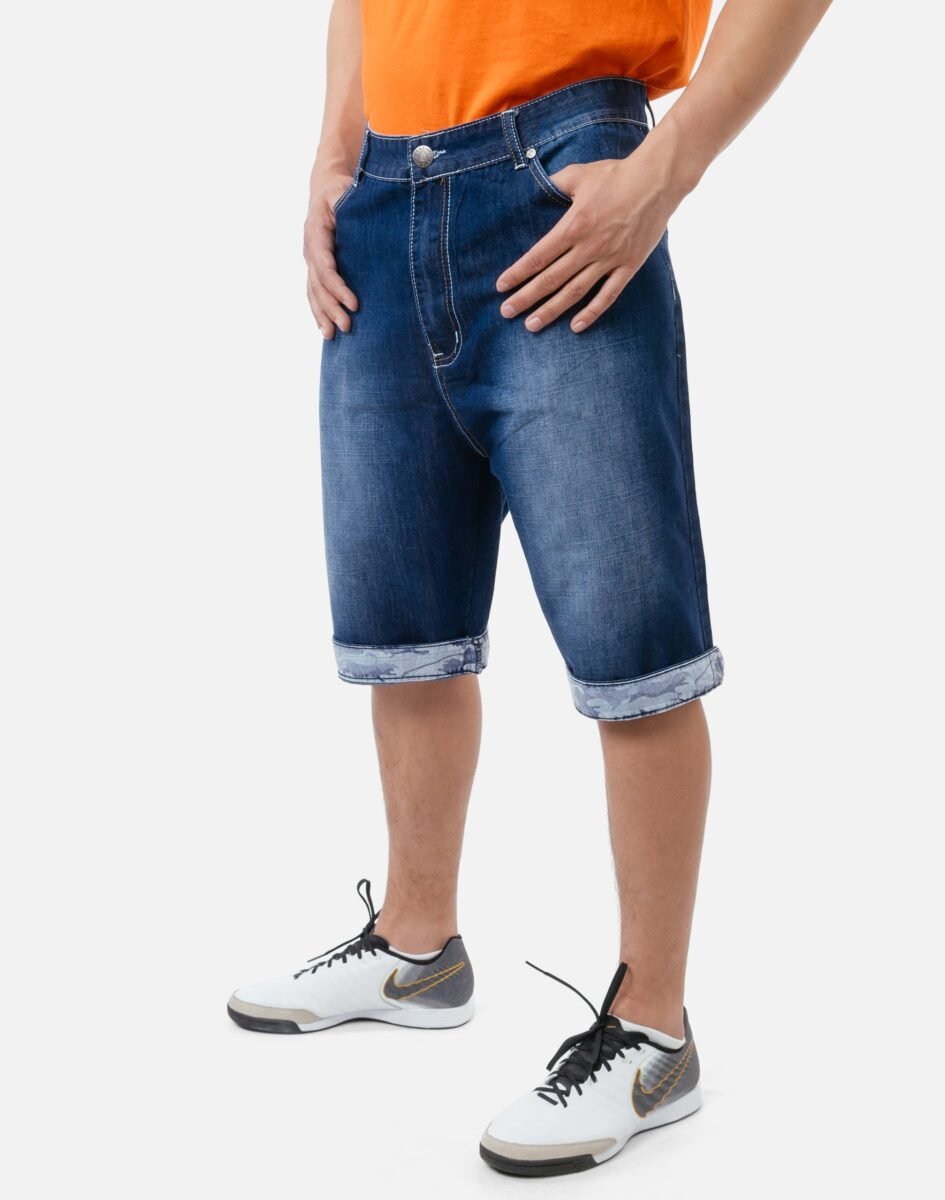 Krótkie spodenki jeansowe z modnym efektem sprania w stylu "used-look" to wygodne rozwiązanie na ciepłe, gorące dni i niezbędny element wakacyjnej garderoby, który doskonale sprawdzi się podczas czasu wolnego. Cienkie i wygodne, o sprawdzonym kroju idealne na co dzień jako element casualowego stroju, czyniąc go lekkim i dostosowanym do wysokich temperatur. Wykonane według najnowszych trendów przewidzianych na ten sezon. Z przodu posiadają dwie wpuszczane kieszenie na dłonie oraz bilonówkę. Z tyłu dwie kieszenie naszywane. W pasie szlufki umożliwiające stylizacje z paskiem. Najmodniejsza obecnie długość w "kolano" z możliwością nonszalanckiego wywinięcia. Wywinięte nogawki wykończone są materiałem w kontrastowym jasnym kolorze. Na nogawkach efektowne fabryczne przetarcia w modnym stylu "used-look". Najbardziej podatne na uszkodzenia miejsca wzmocnione są dodatkowymi przeszyciami i nitami.