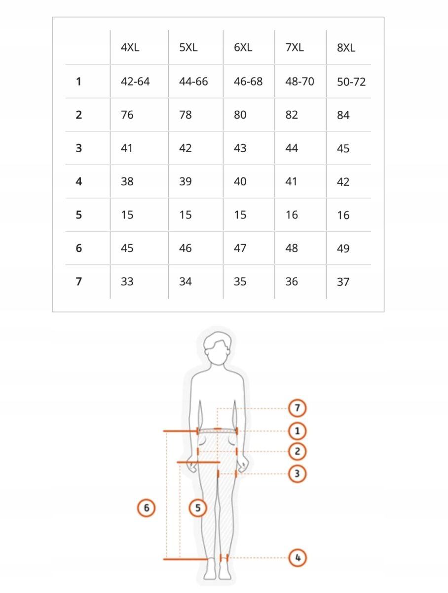 Proszę nie sugerować się rozmiarem podanym na metce przez producenta (np: 4XL, 6XL czy 8XL) ponieważ różne firmy stosują bardzo różne oznaczenia rozmiaru. Najlepiej jest zmierzyć swoje stare spodenki dokładnie centymetrem (bez rozciągania i po rozciągnięciu gumki w pasie) a następnie wybrać odpowiedni rozmiar podany w centymetrach z tabeli na naszych aukcjach.