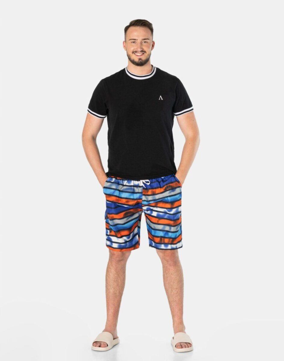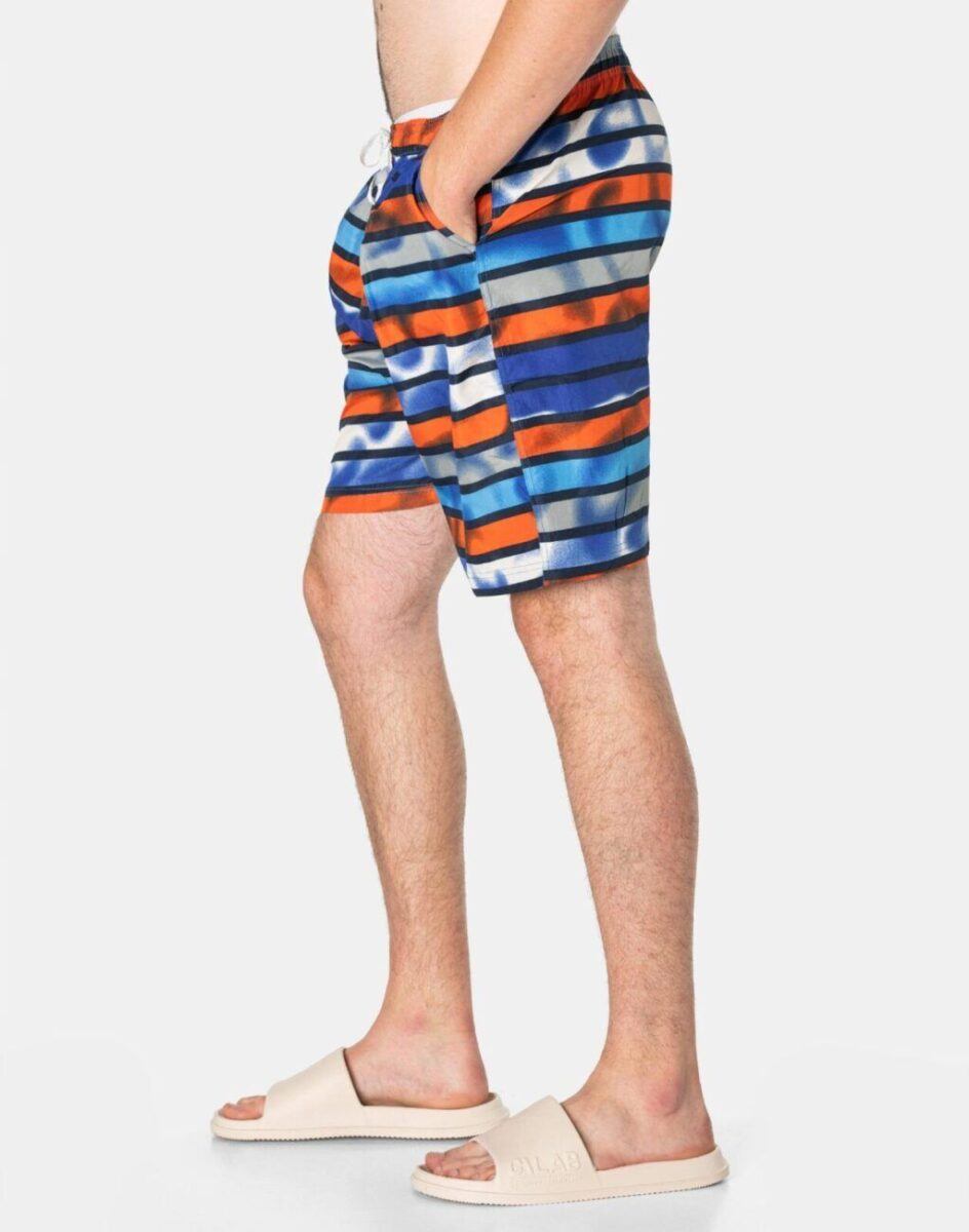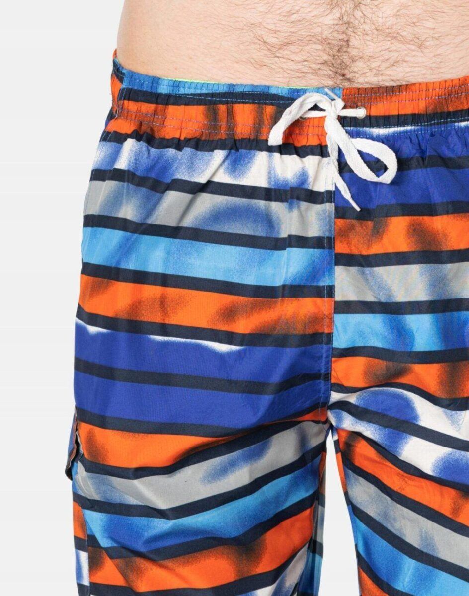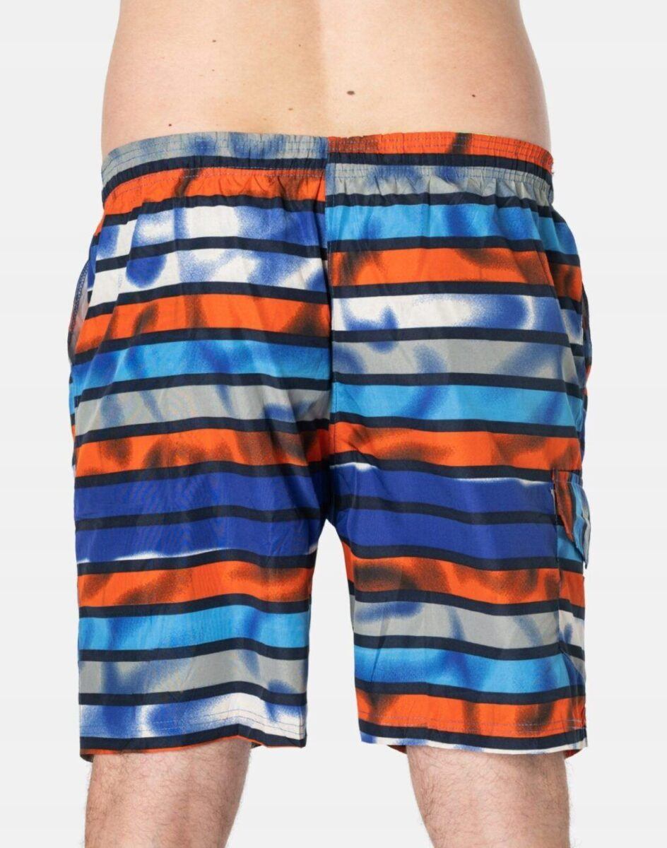 W tym sezonie trwa moda na krótkie sportowe spodenki w paski w żywych, nasyconych kolorach z luźnymi nogawkami typu szorty. Wyjątkowo męskie, lekkie jak piórko, szorty kąpielowe BH 298 idealne na ciepłe i gorące letnie dni. Genialne jako sportowe spodenki kąpielowe będą też pasować do wakacyjnych stylizacji z T-shirtem albo przewiewnym tank topem lub koszulką polo. Wystarczy założyć klapki, t-shirt z nadrukiem, aby bez skrępowania wybrać się do pobliskiej restauracji. Są o wiele bardziej wygodne od klasycznych kąpielówek ponieważ luźne nogawki dają poczucie komfortu, niewymuszonego luzu i wygody, nie opinają ciała i nadają dobre proporcje męskiej sylwetce.